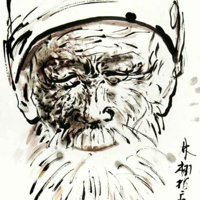 林栩的微信头像是一副指画的老人,他自嘲是自画像。画中,指尖的点墨为老人褶皱的面庞打下了明暗的阴影,也将点点指纹留在了画纸上。就这样,画家的指纹,画像的褶皱,这些象征生命的“年轮”,以指画特有的绘画语言,“双关”似地被同时刻画了下来。