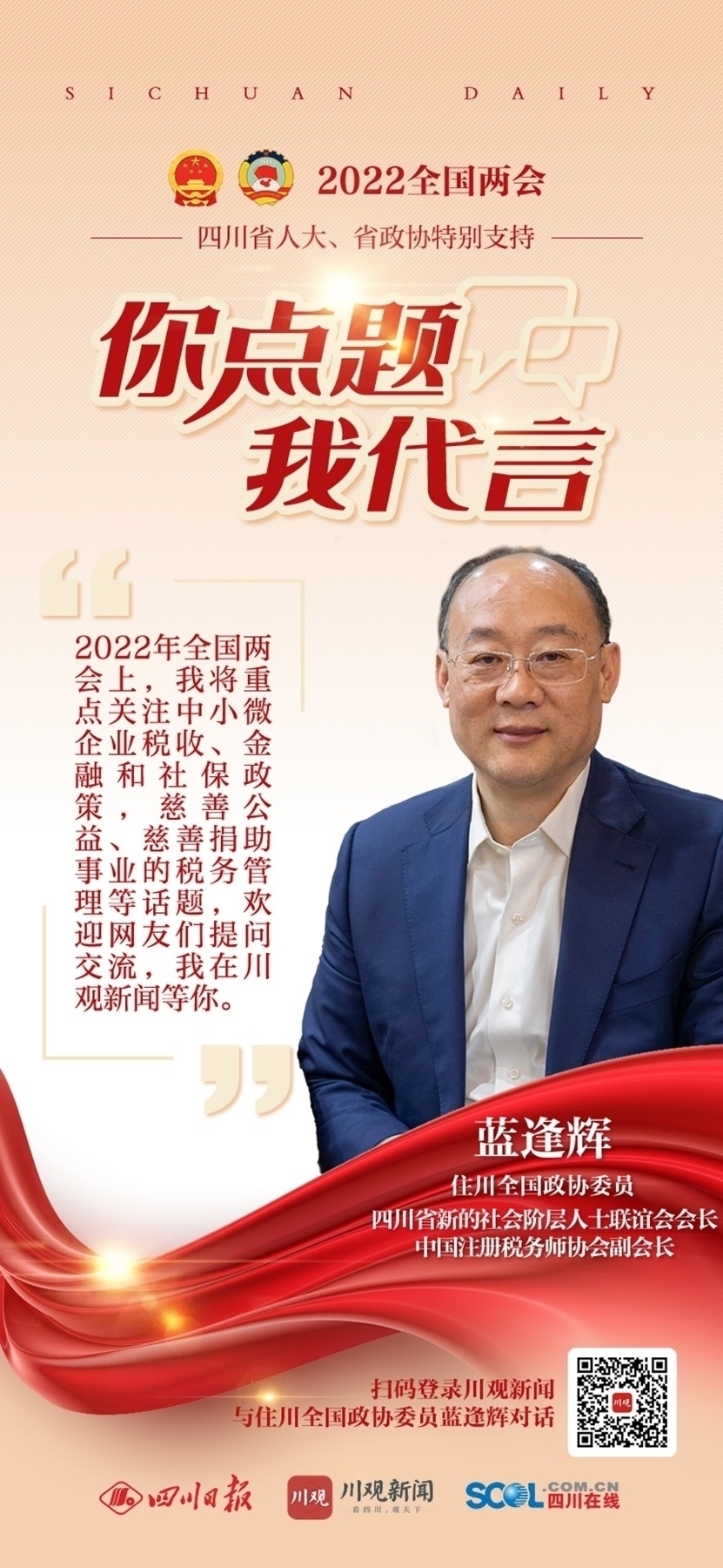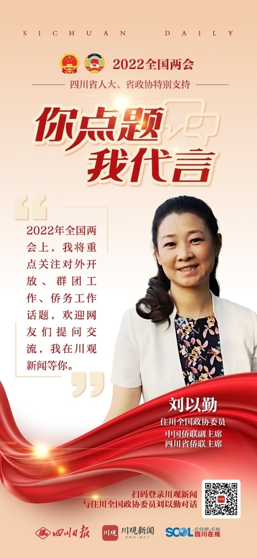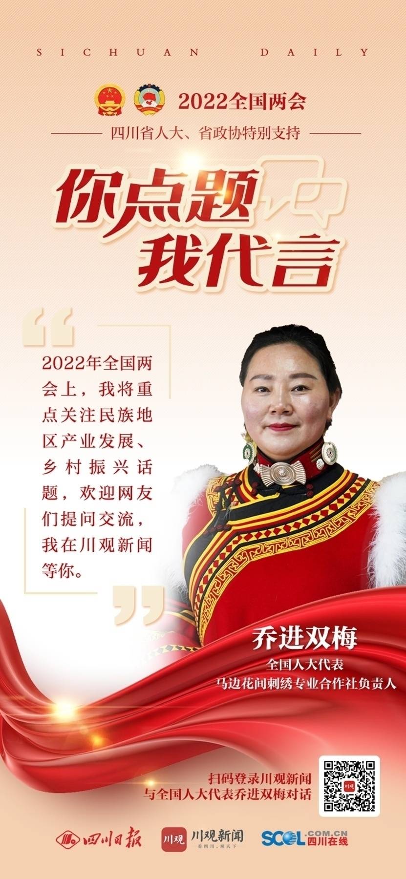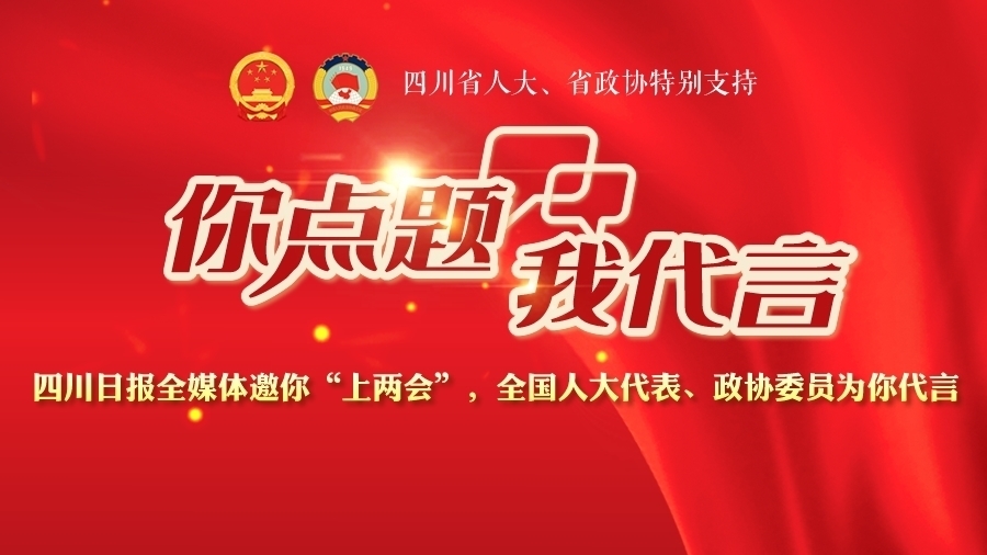 2022年全国两会召开在即。今年大家有哪些新期待?又有哪些心里话想请代表委员们捎上两会?3月2日起,四川日报全媒体推出“你点题 我代言”全国两会互动专题活动,诚邀网友与四川省全国人大代表、住川全国政协委员们“面对面”交流,共话民生,共促发展。