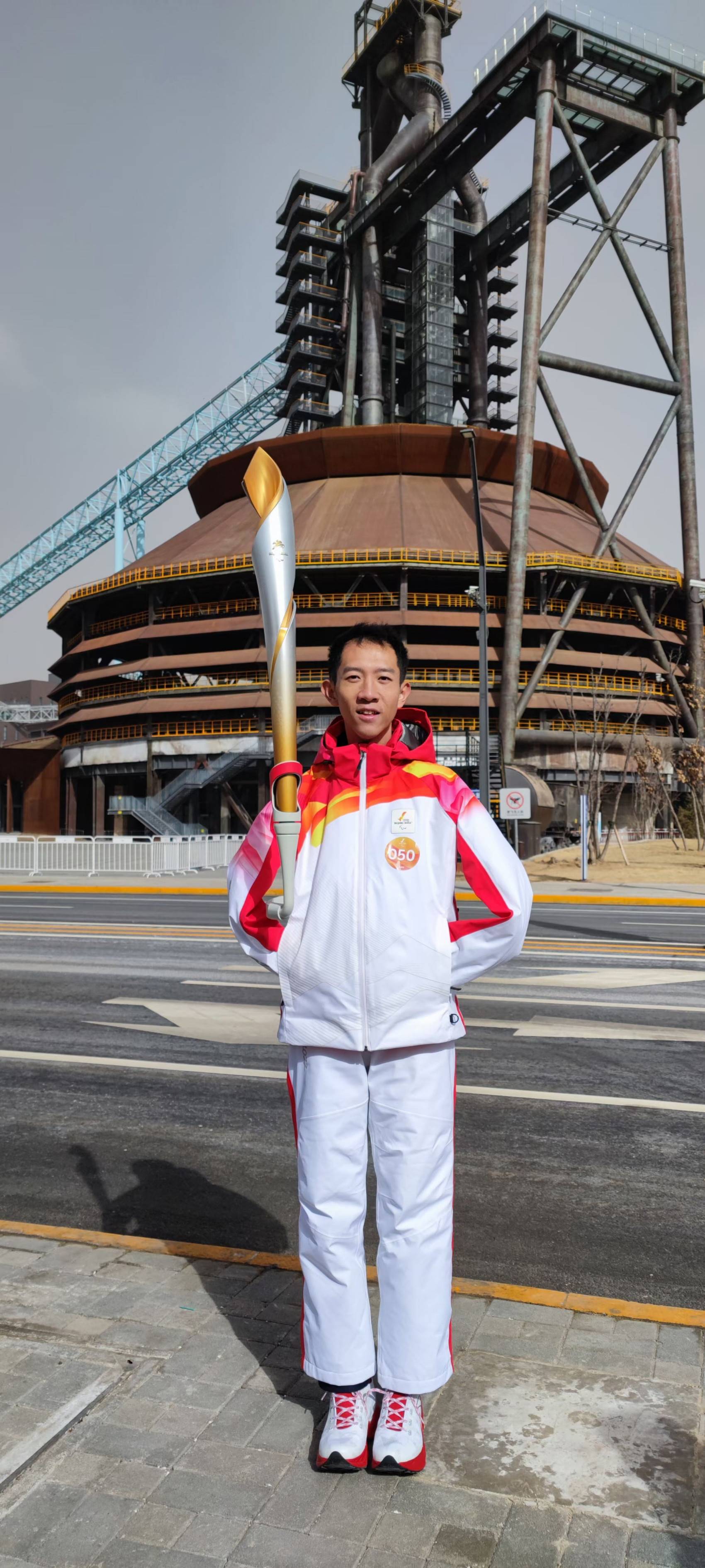 据彭超介绍,今天上午10:33左右,他在北京首钢园点位完成了火炬传递,是第50棒。