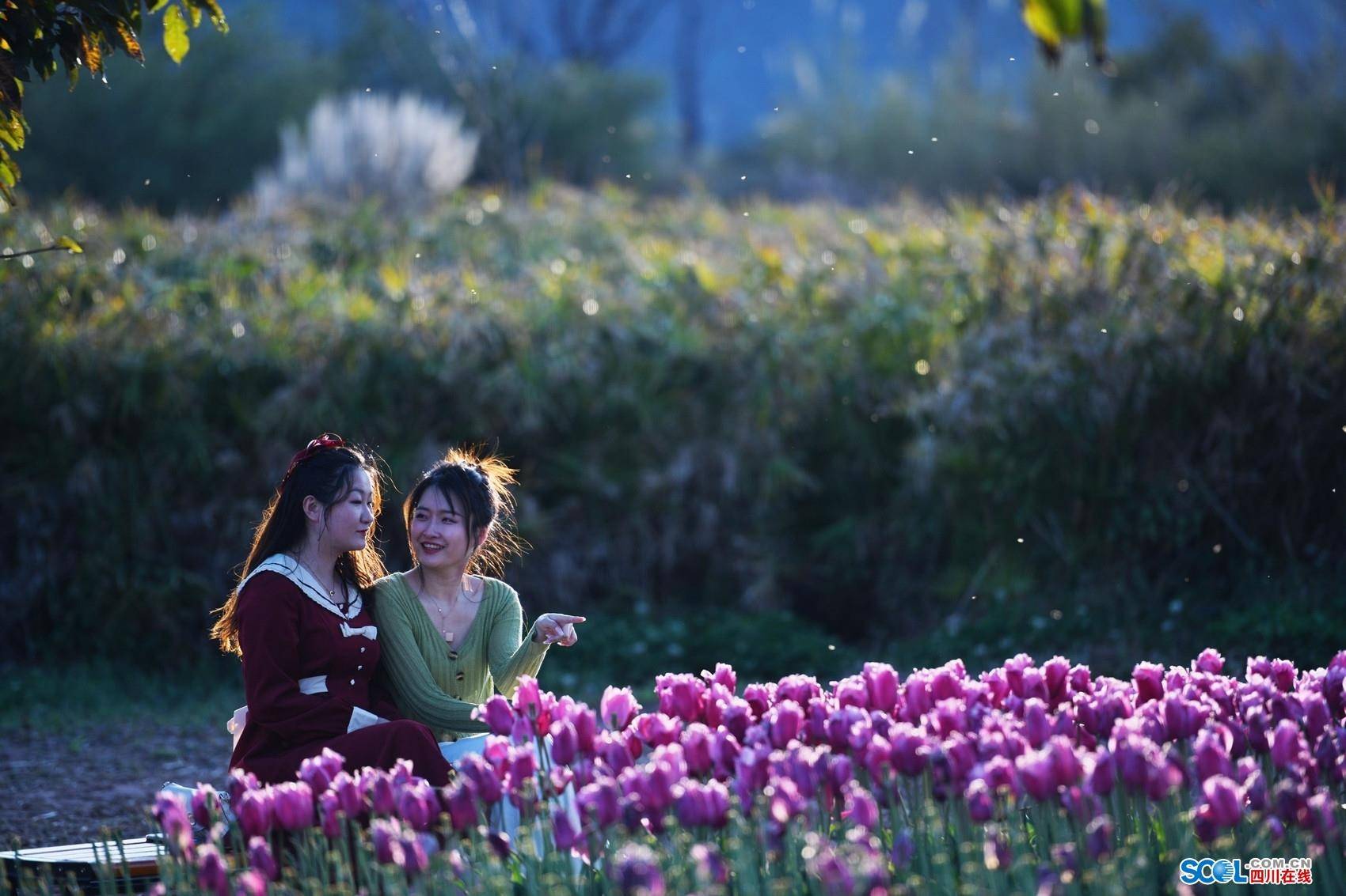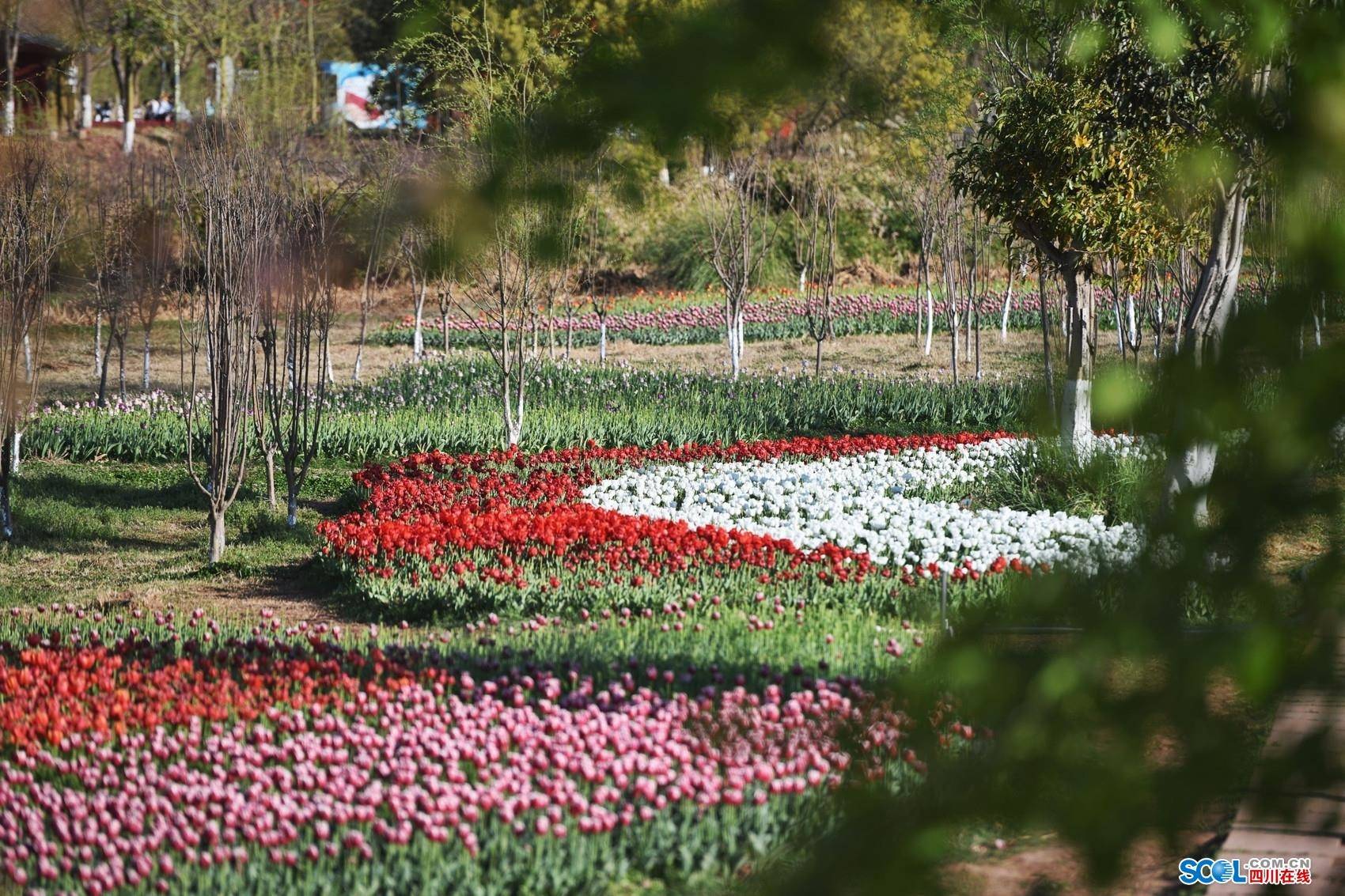 郁金香开成一片花海,温柔的粉、火热的红、灿烂的橘……络绎不绝的游客漫步花海中,沉浸式体验诗情画意的世界,看成片的郁金香芬芳吐蕊,灿烂又浪漫的绽放,美得令人陶醉。