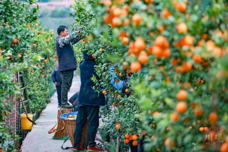 阳春三月,雅安石棉县5.21万亩黄果柑进入收获季。3月4日,走进金果满枝的石棉县安顺场镇黄果柑园,数支采果队正熟练地采摘着黄果柑,一篓篓金黄的果子被源源不断地输送到果园旁的收购点,经过初选、称重、装框、装车,送向洗选厂并发往全国各地。