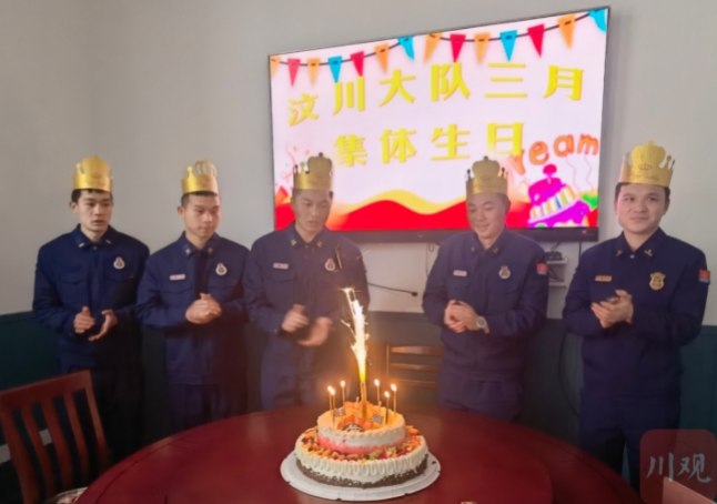 “祝你生日快乐、祝你生日快乐、祝你幸运、祝你健康……”3月4日晚,伴随着一首生日快乐歌,四川省森林消防总队阿坝支队汶川大队营区里不时传出祝福声和掌声,5名森林消防员在战友们的簇拥下登场。