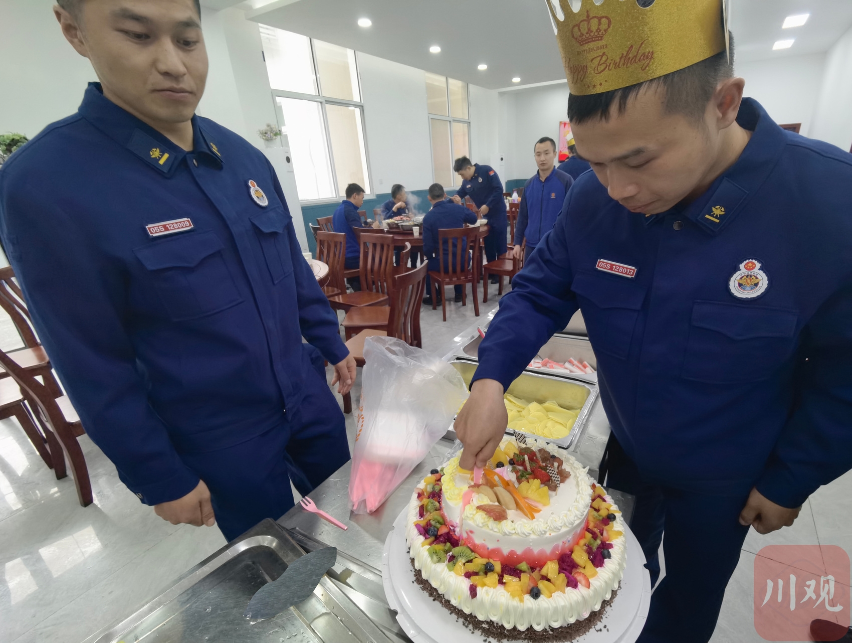 炊事班为过生日的森林消防员们精心制作生日蛋糕,大家围在一起送上生日祝福,在增进战友情、兄弟爱的同时,也增强了对大队的认同感和归属感。