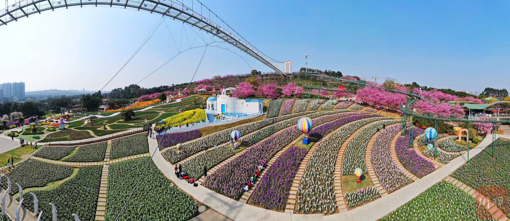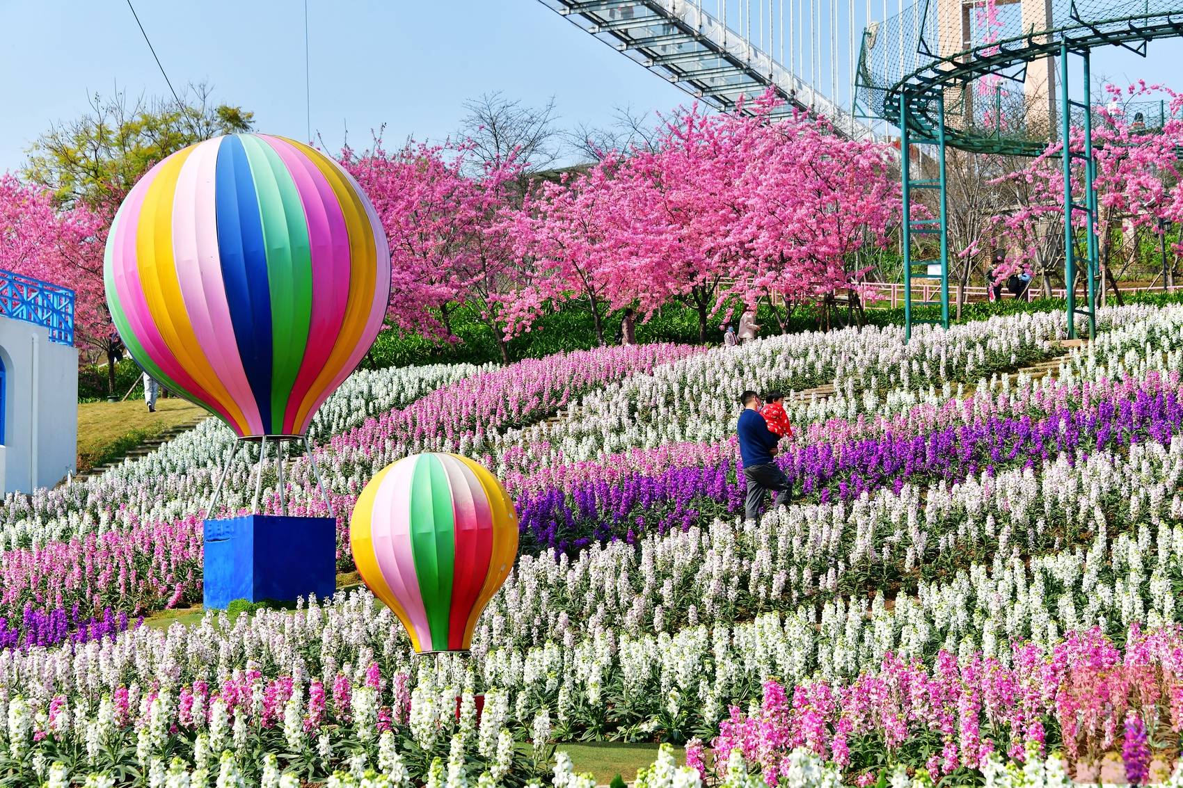 连日来春光明媚,成都市新都区漫花庄园粉樱盛开,吸引了不少游客前去赏花踏青。大家漫步在粉樱树下、鲜花丛中,纷纷拿用手机、相机定格下眼前的春日美景。