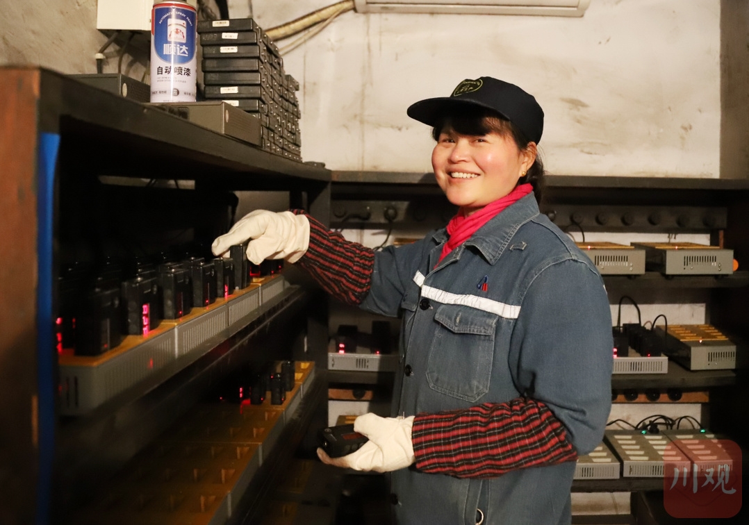 华荣能源公司斌郎煤矿矿灯房内,女工笑着迎接每一天的工作。