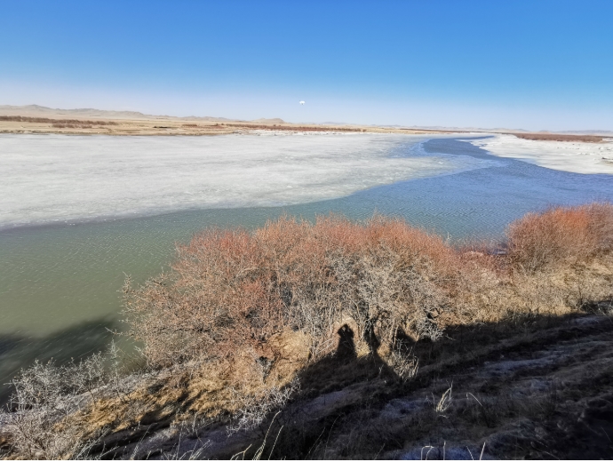 四川在线记者也下马现场“围观”。这片灌木丛,品种是当地常见的沙棘和红柳,不像其他地方三五一丛,这片灌木林大约三四百米长,长势良好。高原上的3月,灌木整体略显枯黄,其间夹杂着几抹淡红,与悬崖下清澈碧蓝的黄河水,以及河面白色的冰雪相互映衬,更显很特别。