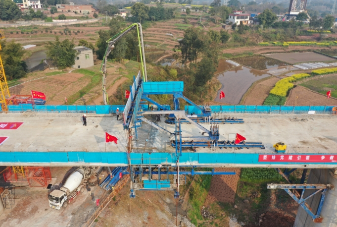 3月9日,渝昆高铁站前三标首座百米连续梁——黄泥堡村1号特大桥连续梁顺利合龙,打通了泸州往重庆方向架梁通道,为渝昆高铁川渝段项目顺利推进奠定了基础。
