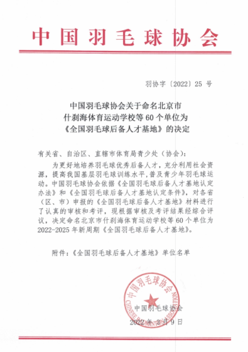 据悉,经中国羽毛球协会认真审核实地考评和综合评议,全国共60家单位被认定为2022-2025年新周期全国羽毛球后备人才基地。中国羽毛球协会相关负责人表示,全国羽毛球后备人才基地是为更好实施国家奥运会战略体育后备人才精品工程,旨在提高羽毛球项目业余训练工作的质量和效益,培养更多的高水平后备人才;坚持以“选好苗子、着眼未来、打好基础、系统训练、积极提高”为高水平训练工作的指导方针,全面加强市少体校羽毛球训练工作,保持羽毛球竞技体育后备人才的优势地位。