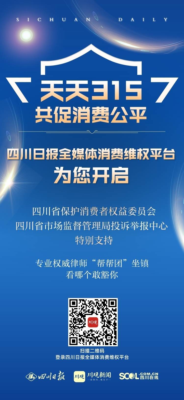 此外,3·15“律师帮帮团”将入驻川报全媒体消费维权平台!多位消费维权领域王牌律师团队,为全川网友的每一次消费维权提供专业的法律建议。一起向损害消费者合法权益的行为说“不”吧!