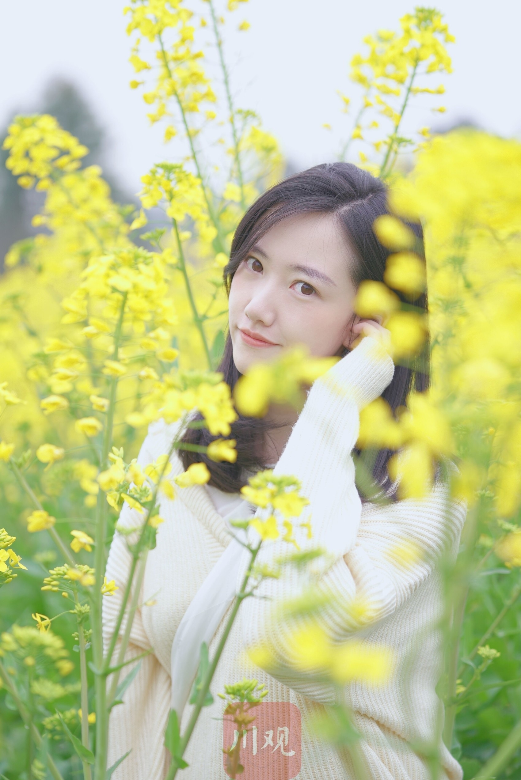 油菜花田的全貌随着扶梯下行慢慢呈现在眼前。