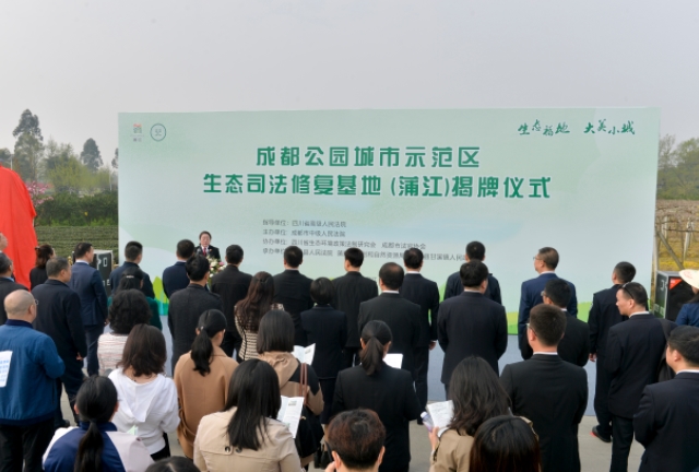 3月11日,蒲江县甘溪镇藕塘村内,成都首个公园城市示范区生态司法修复基地(以下简称“基地”)揭牌。