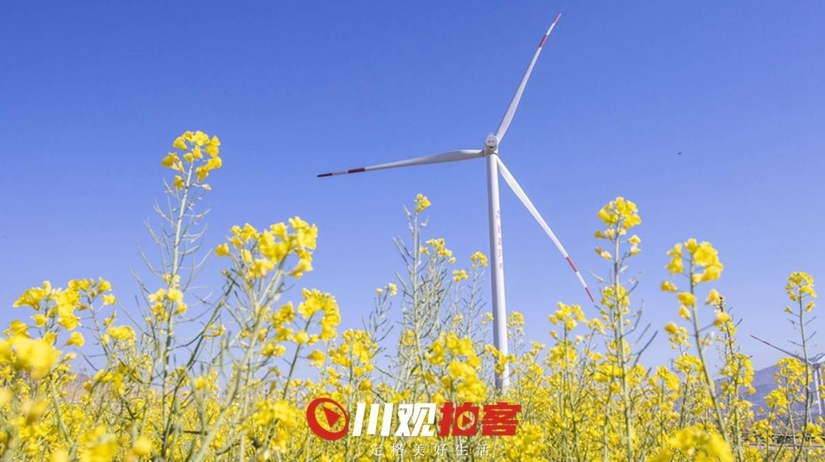 西昌阿七镇大田村400亩油菜花海惊艳亮相!金黄的颜色在阳光照射下格外耀眼,仿佛一张“黄金地毯”渲染着大地。偶有彩蝶和蜜蜂飞舞花间,翻滚的花浪与蓝天白云、旋转的“风车”相得益彰,共同构成一幅美丽的春日田园画卷。