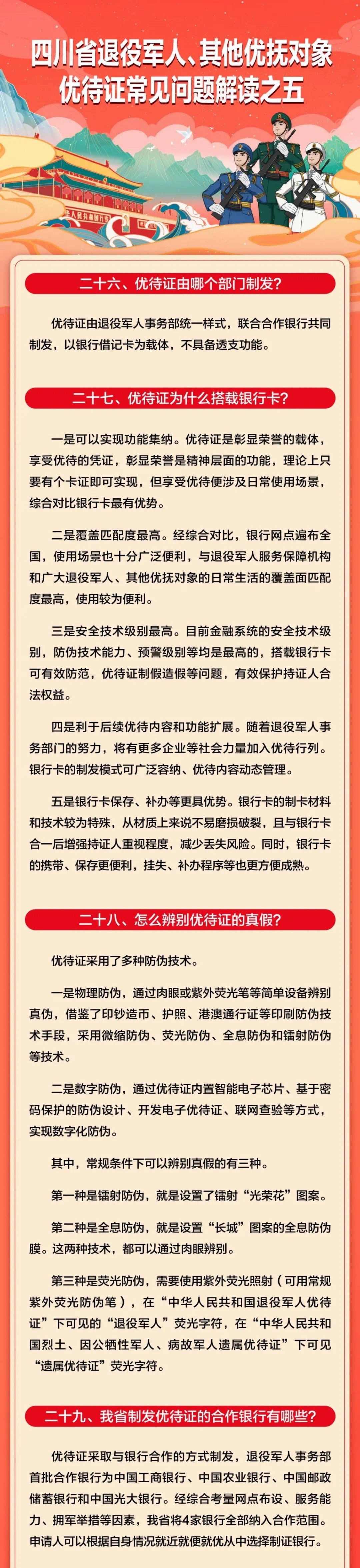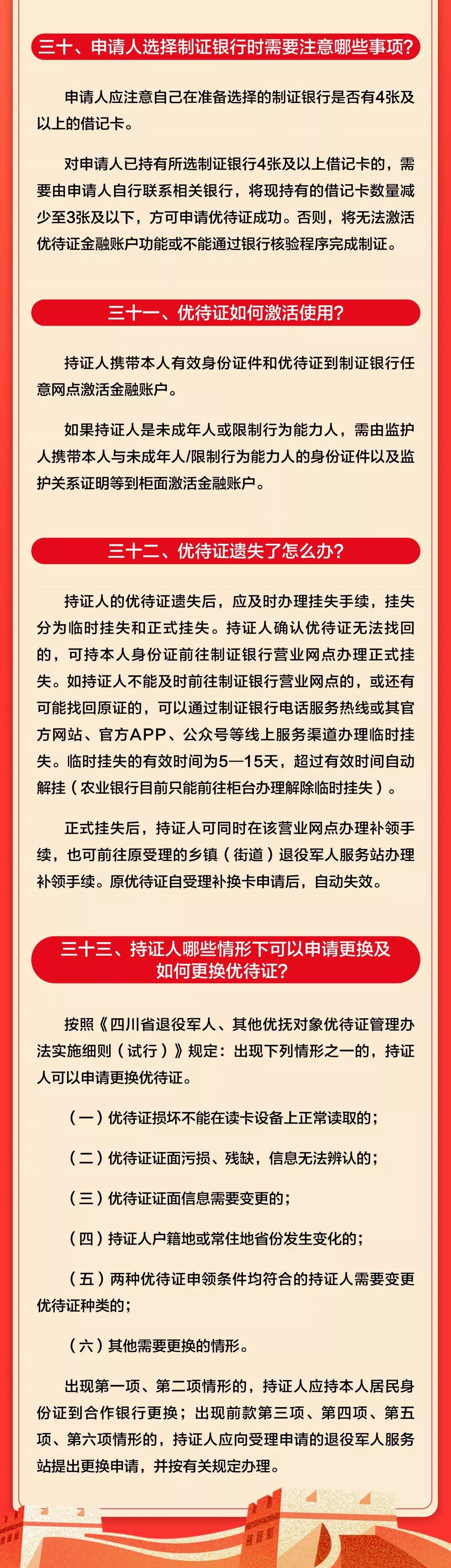 为落实《中华人民共和国退役军人保障法》有关要求,做好退役军人、其他优抚对象优待证管理工作,日前四川省退役军人事务厅制定了《四川省退役军人、其他优抚对象优待证管理办法实施细则(试行)》。