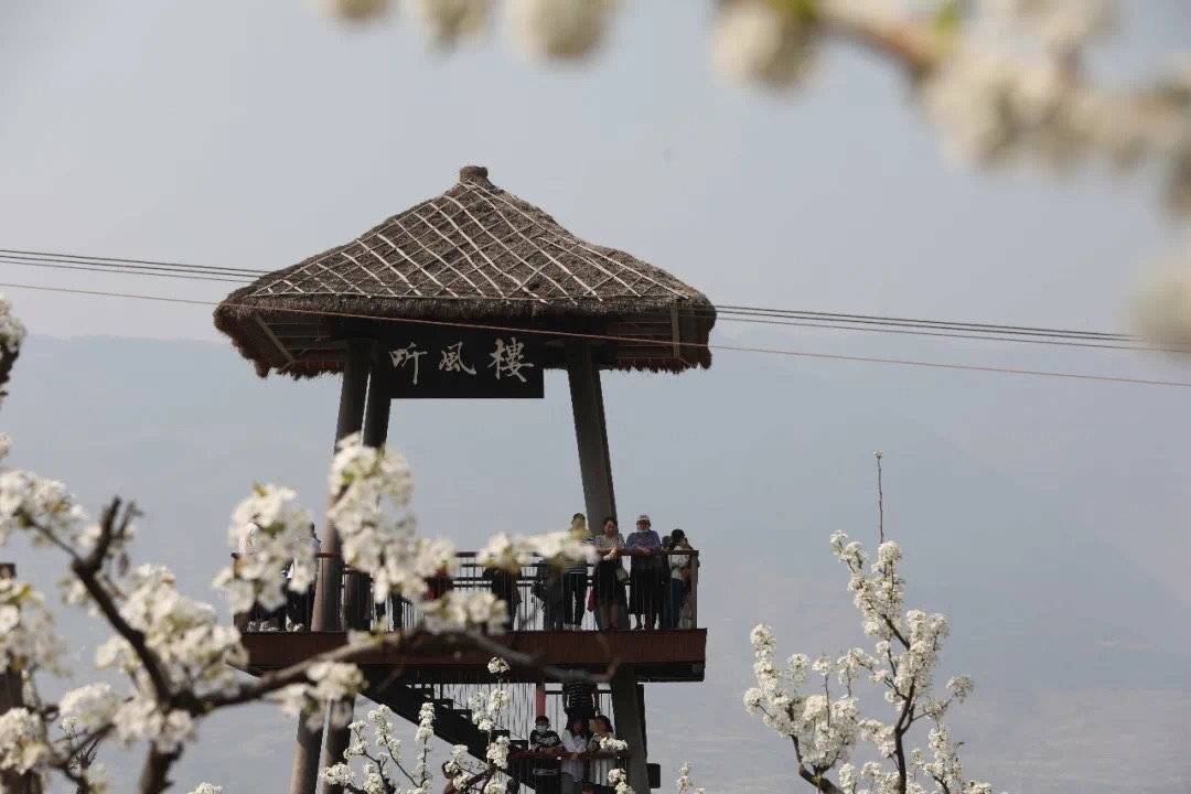 D2:槿上梨花赏花点赏花——塔山望春观景平台俯瞰身在花丛中的九襄全景——花海果乡登听风楼、过情人桥、赏百花盛景——三强民宿村了解汉源民宿联盟和新村之美。