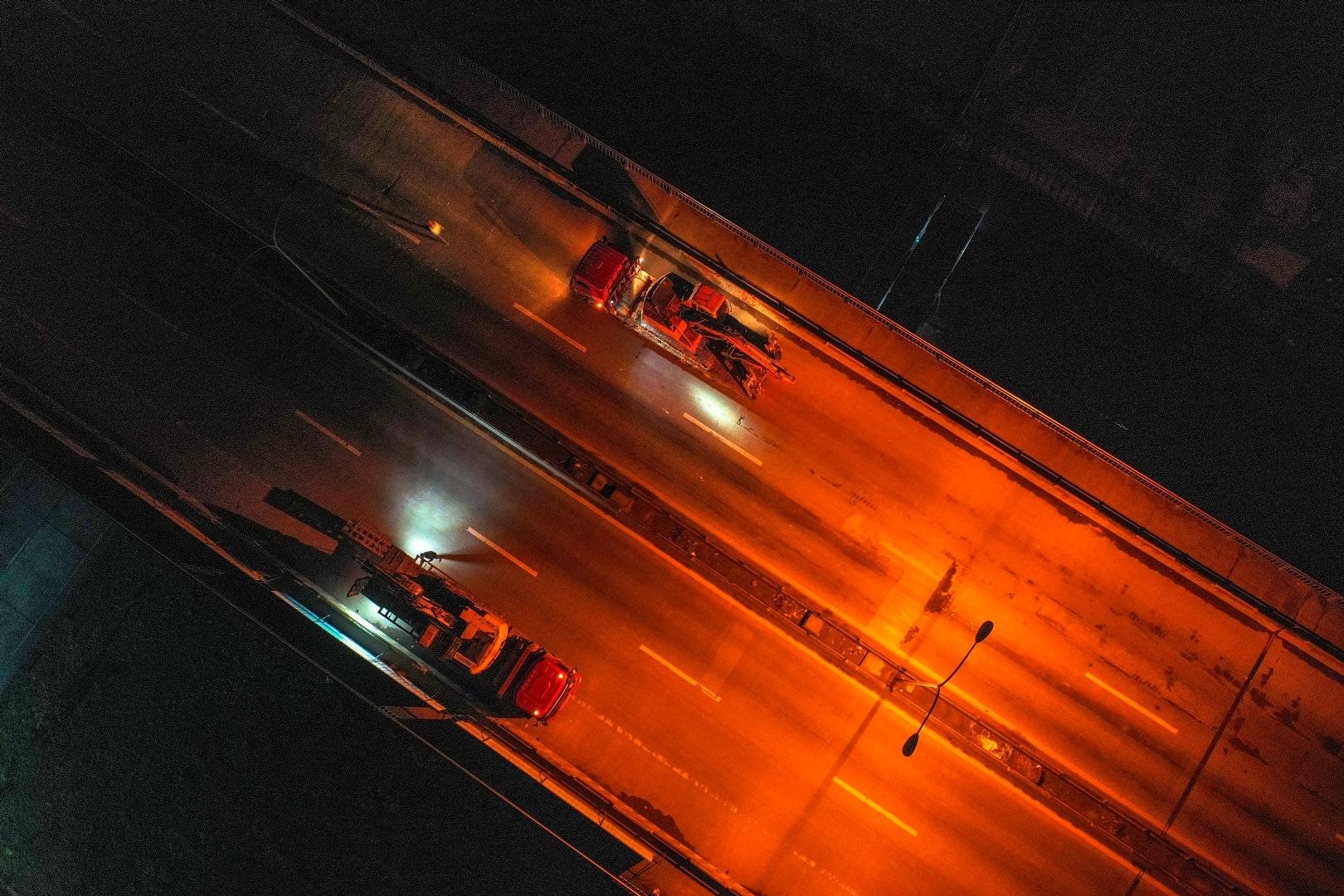 “最后一分钟了,把爆闪灯开起,不要再放车过来了!”3月15日零时,待最后一辆车通行后,泸州泰安长江大桥两岸的施工人员快速将路障摆放好,数辆挖掘机、装载机、自卸机从两岸向桥上汇聚,并停靠在指定施工段。为期4个月的泰安长江大桥封闭施工正式开始。