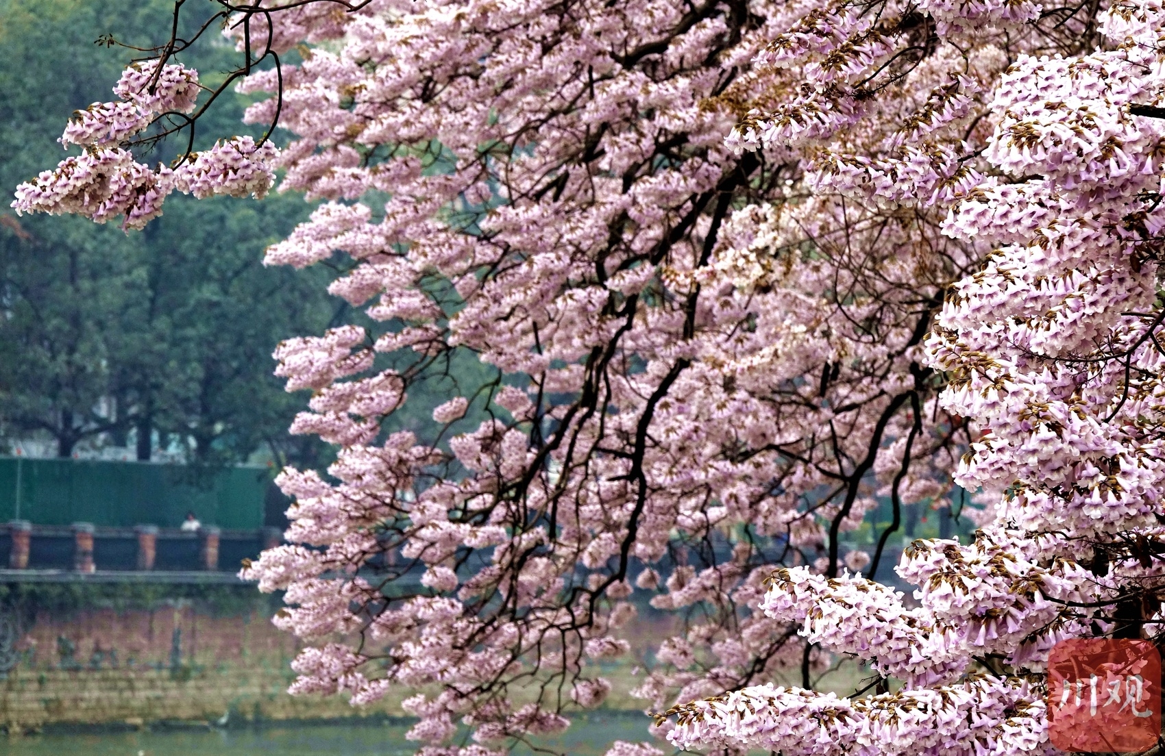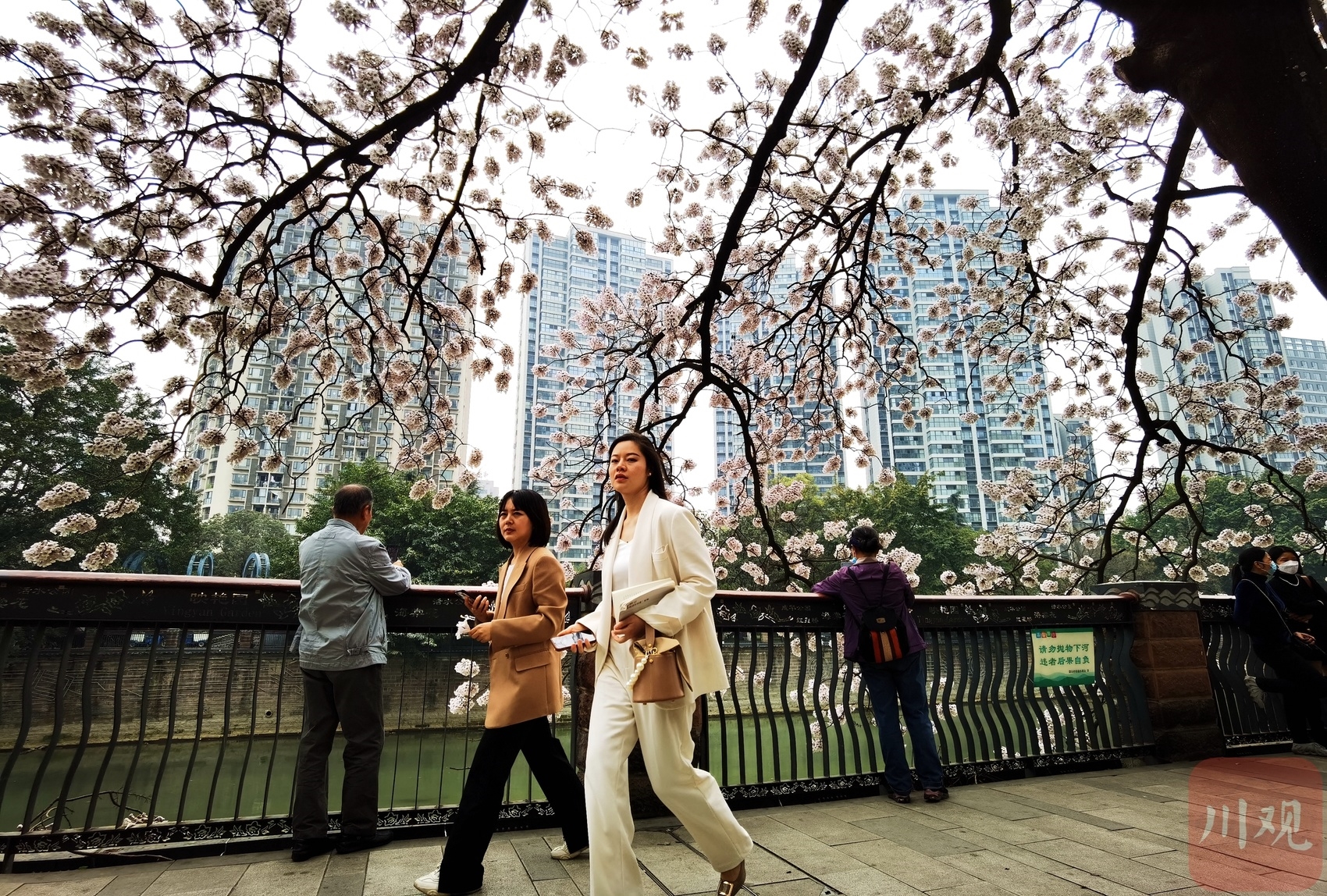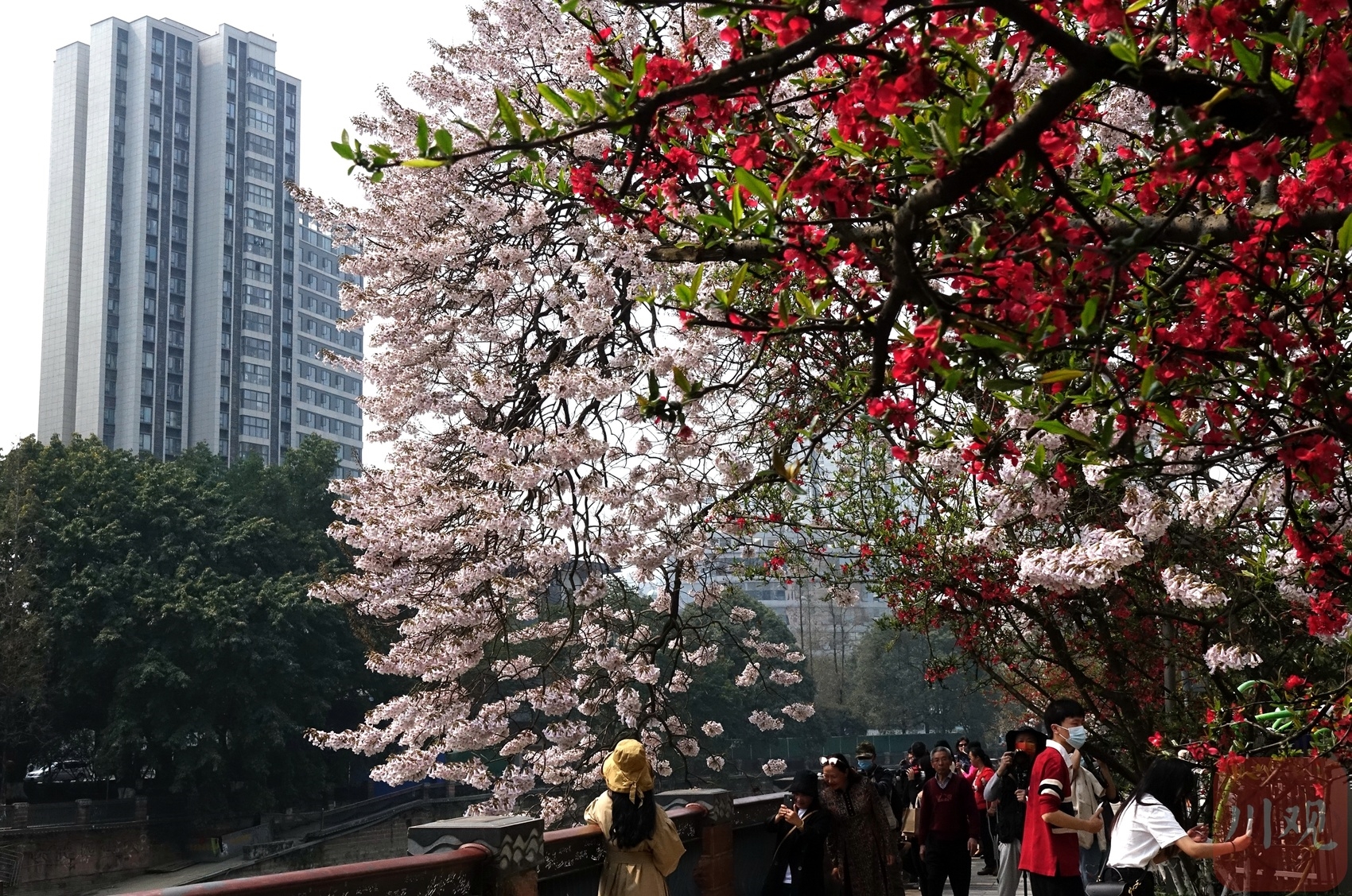 春光正好,在成都市红星桥星辉东滨河路府河边,又多了一处“网红打卡地”,许多市民专程跑来赏花拍照,河边上的几株泡桐树花正在阳光下热烈绽放,盛开的花朵像粉色的花雨伞,随手一拍,就是绝美大片。