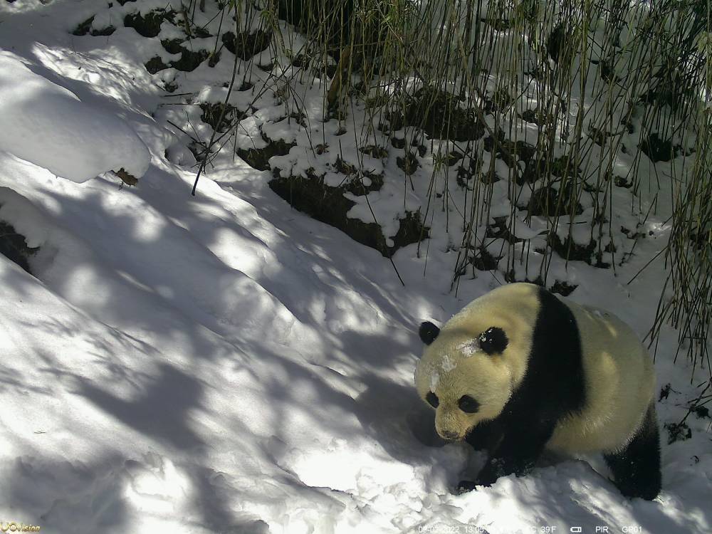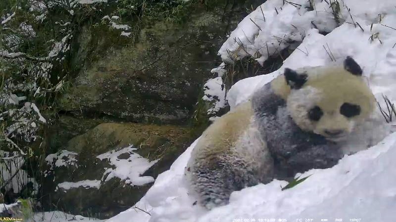 根据回收的红外相机捕捉到的画面,这只野生大熊猫在齐腿深的积雪中“练习滑雪”,只见它雪中转圈撒欢,玩累了打算离开,却脚下一滑滚到了雪坑里。整个过程萌态十足,让人忍俊不禁。