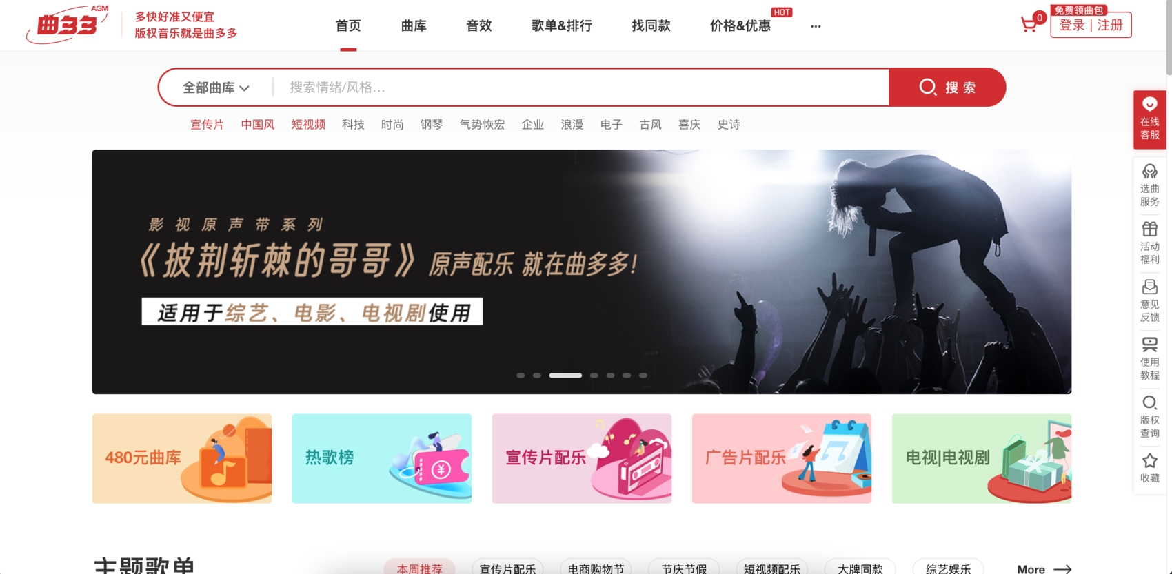 HIFIVE旗下曲多多商用音乐授权平台,主要面向广告/影视剧/综艺/游戏等内容创作者。