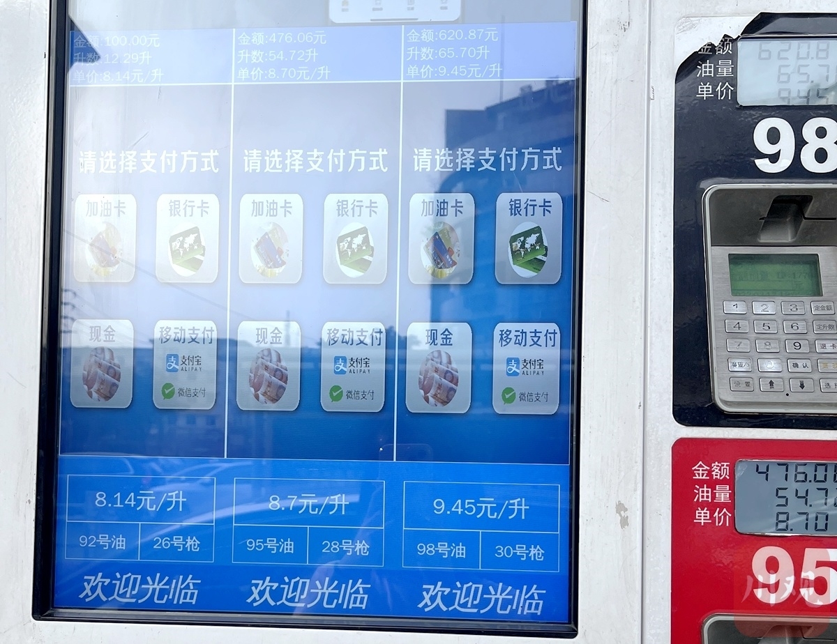 92号油8.14元/升,95号油8.7元/升,98号油9.45元/升。这是四川在线记者在成都中石油青羊加油站看到的今日油价。