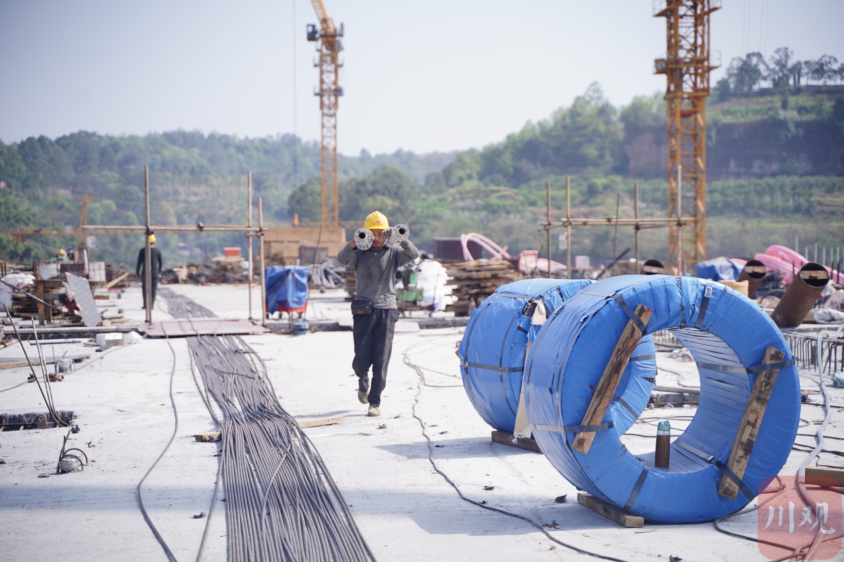 2022年3月18日,四川省眉山市彭山区岷江大桥(拆除重建)项目施工现场一派繁忙。设计名为“盛世花开”,全长509米、宽32.5米的四川省眉山市彭山区岷江大桥(拆除重建)项目,于2020年5月开工建设,采用三塔式斜拉桥结构施工方案。目前施工队伍正加班加点,紧锣密鼓进行桥面施工,建成后极大改善岷江两岸交通通行能力,带动周边经济发展。