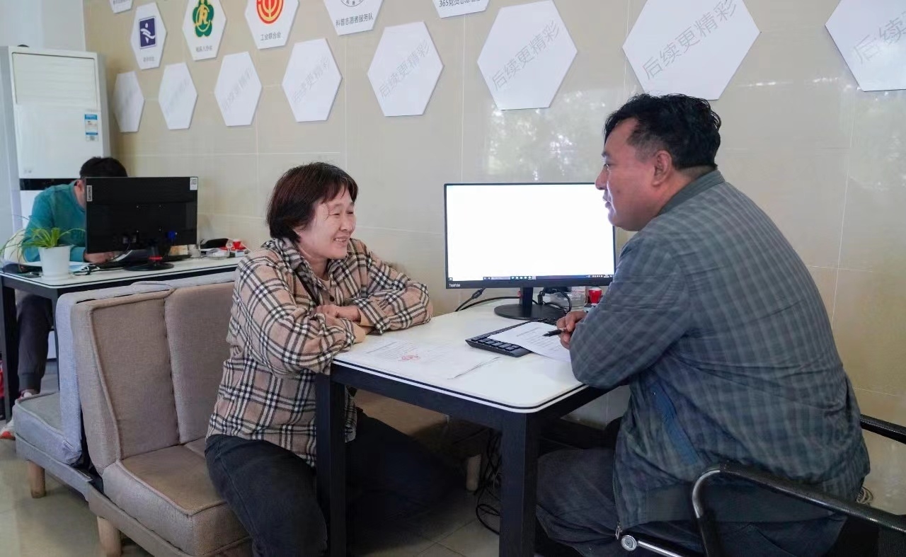 近日,米易县丙谷镇观音阁社区居民在党群服务中心办理业务。居民和工作人员坐在同一张桌子前,缩短沟通距离。(米易县融媒体中心供图)