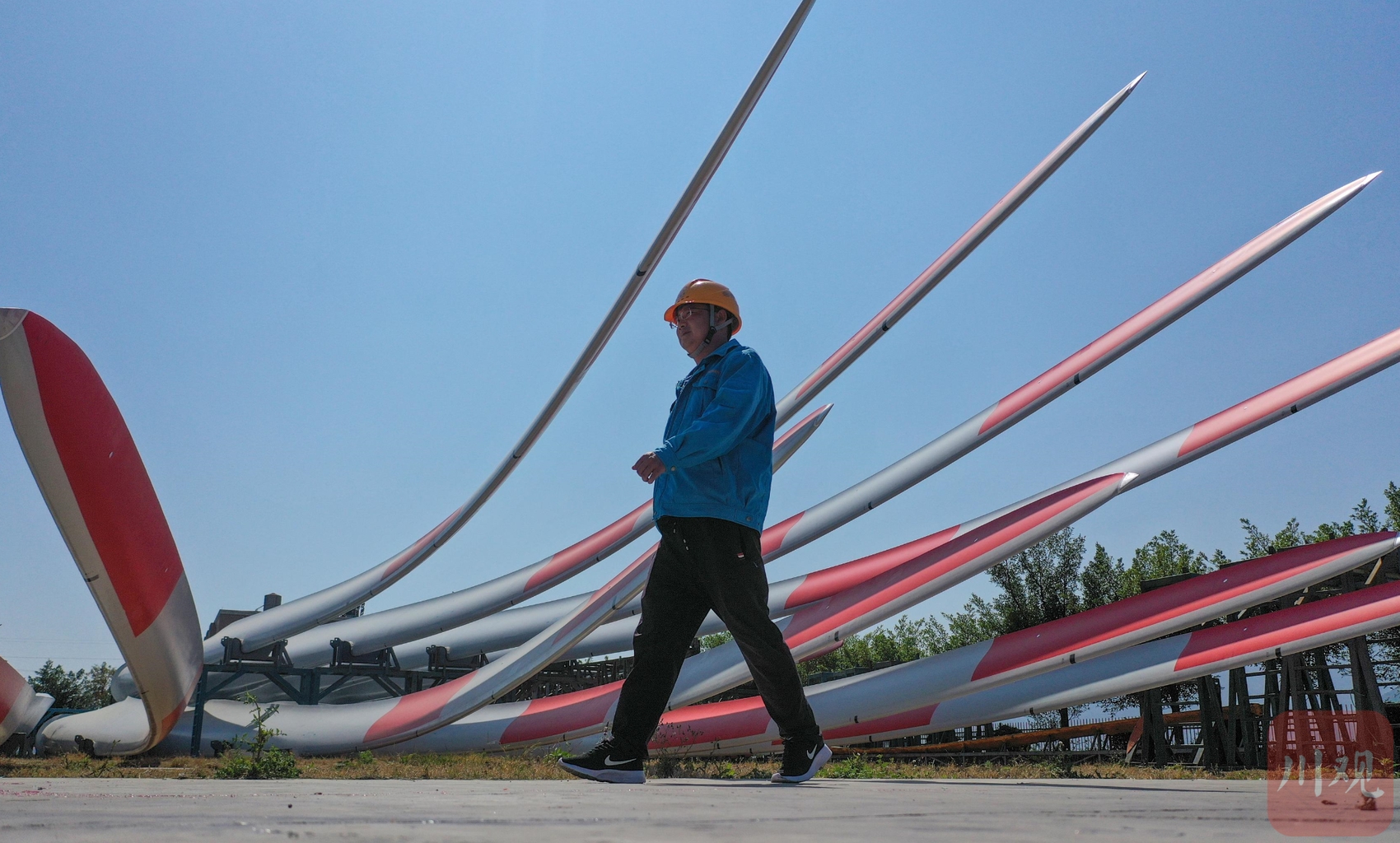 3月10日,东方电气集团凉山风电装备制造示范基地内,生产好的叶片摆放得整整齐齐。