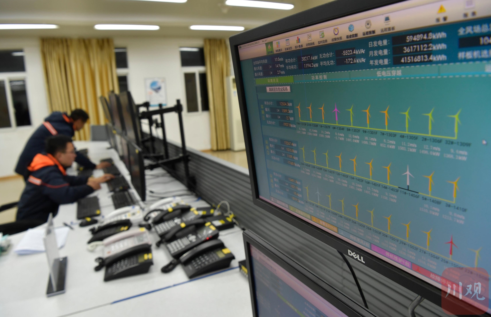3月10日,凉山州会东县拉马风电场的监控室内,电脑准确记录风场内每台风机的运行情况 。