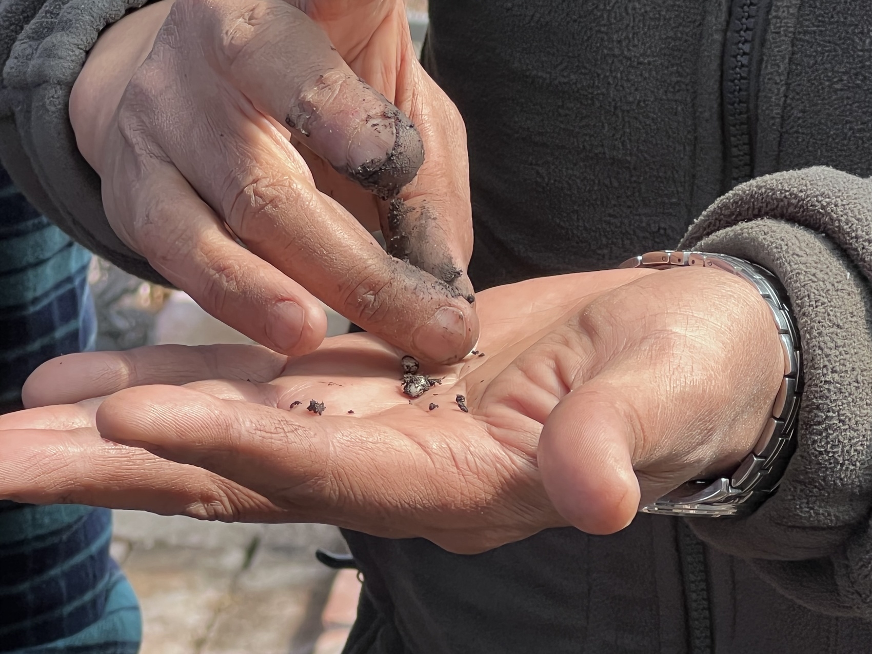 三月的得荣县,依然春寒料峭。3月21日,在海拔3640米的太阳谷镇浪中村,川贝母种植基地的技术人员朱红华打开保暖用的大棚,刨开泥土,向记者展示一粒粒川贝母种子。
