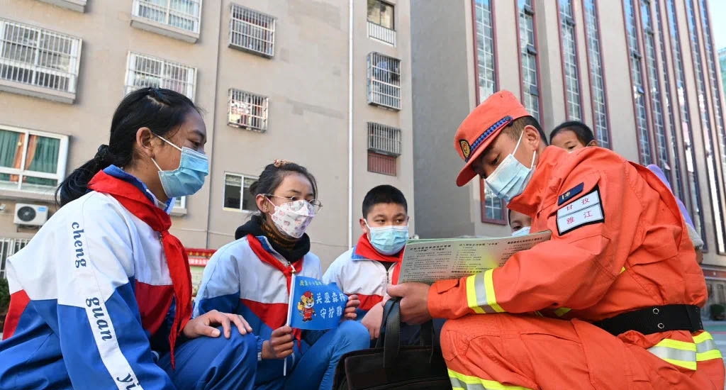 甘孜州森林消防支队雅江大队消防员走进城关第一完全小学。图源雅江县融媒体中心