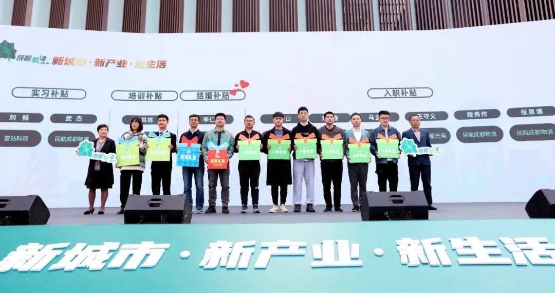 活动中,10位数字经济青年人才代表登台。他们在实习、入职、培训、结婚等方面获得相应人才补贴。今年1月刚结婚的李仁杰是青年人才代表之一,作为在津工作的数字经济青年人才,他将收到新津送出的价值9999元的一次性结婚消费大礼包。“我是地道的新津人,能收到家乡的新婚‘祝福’非常温暖与惊喜。”李仁杰说。来自北京的刘畅是首批享受政策的青年人才中年纪最小的一个,还未毕业的她,在位于新津的壹站科技有限公司实习,按照新政,她每月能获得1500元/人标准的学生补贴政策。“这对即将走出校园、走进社会的青年人来说是一份难能可贵的激励。”