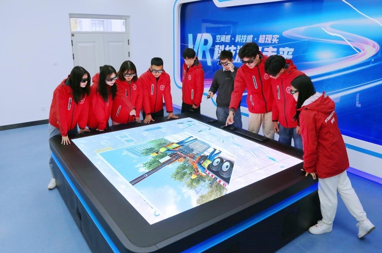 道桥专业学生在路桥施工虚拟仿真实训室上课