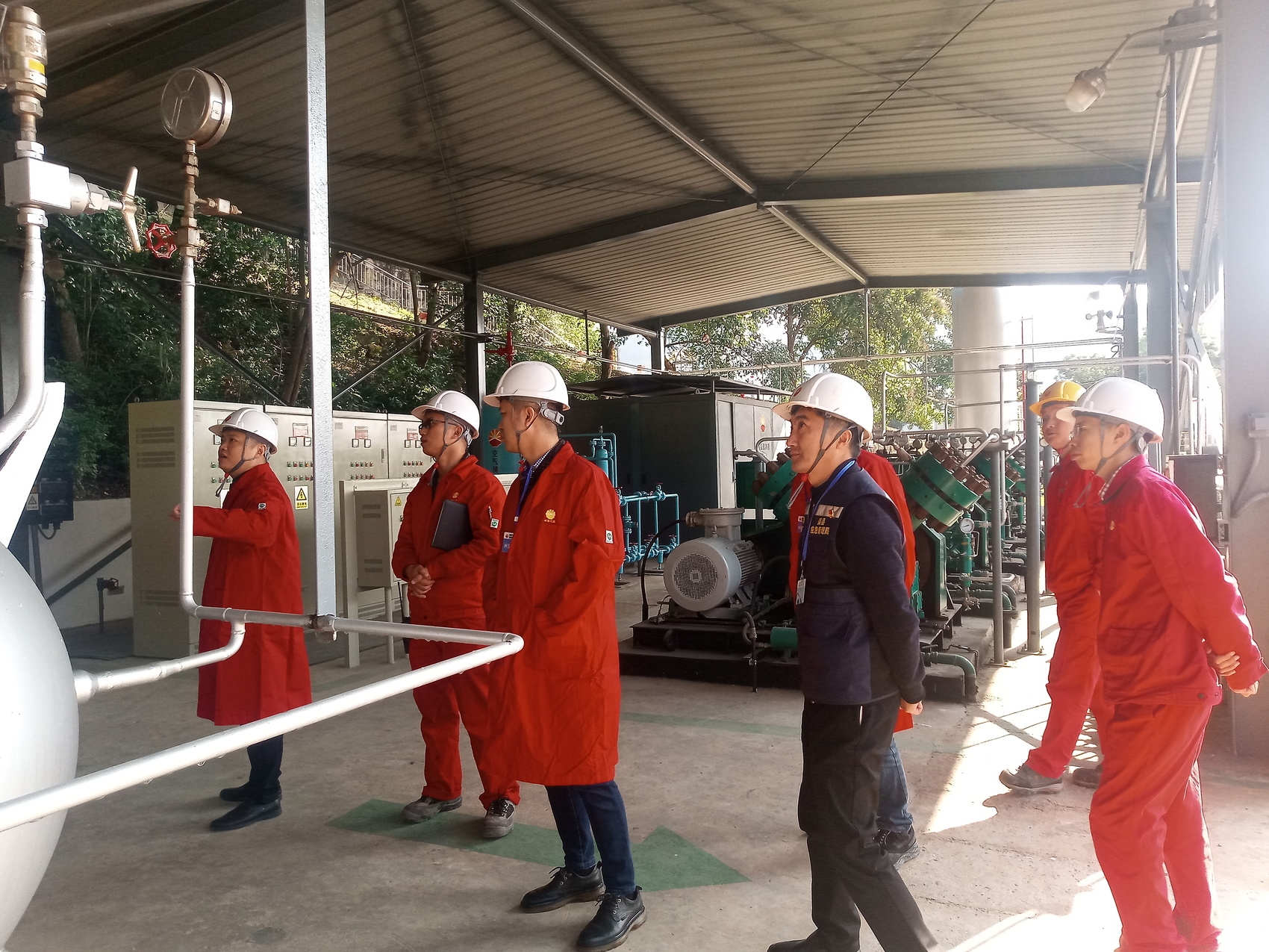 自贡市应急管理局对中石油西南油气田分公司成都天然气化工总厂荣县氦气分厂开展执法检查。郑雪琳 摄