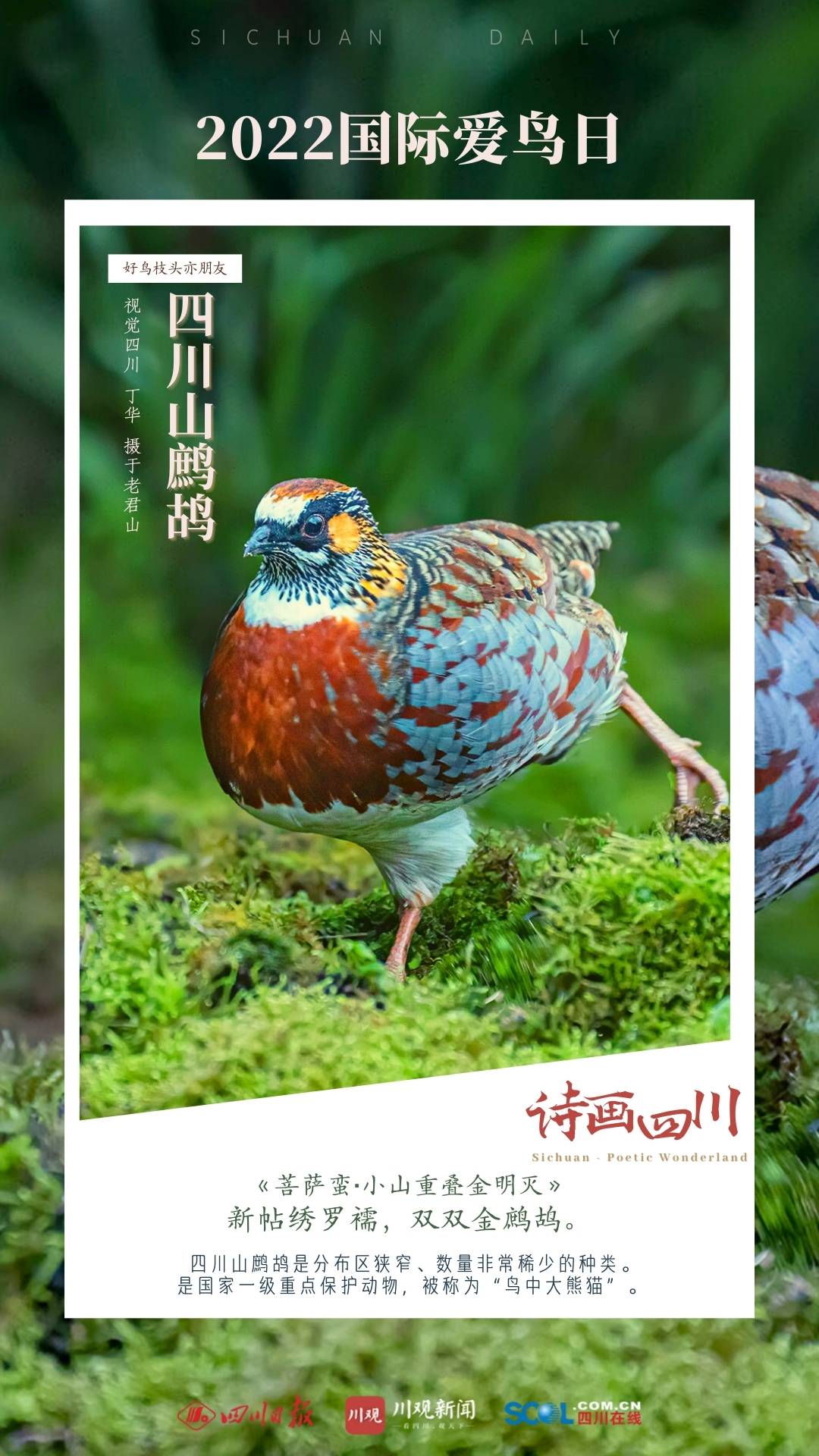 作为长江黄河上游重要生态屏障和水源涵养地,四川是我国生物多样性最丰富的省区之一,也是鸟类栖息的天堂。根据国家林业和草原局、农业农村部于2021年2月5日公布的新调整的《国家重点保护野生动物名录》,四川现有国家重点保护鸟类187种,含一级重点保护的37种,二级重点保护的150种。