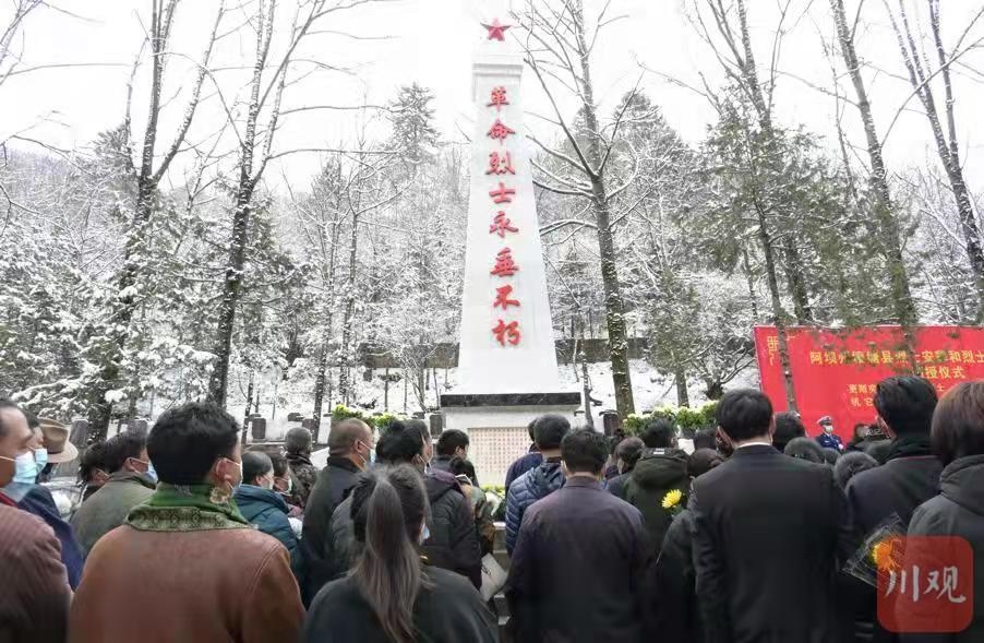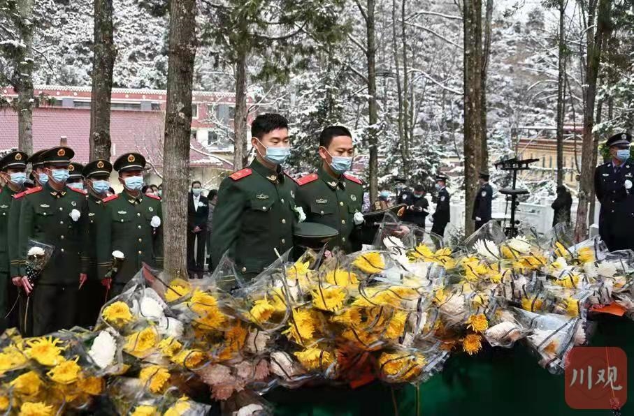 仪式现场,扎东、机它、曲州烈士骨灰盒由礼宾护送到墓集中安葬,在场干部群众向更斯穷和扎东、机它、曲州烈士敬献花束,以表哀思。