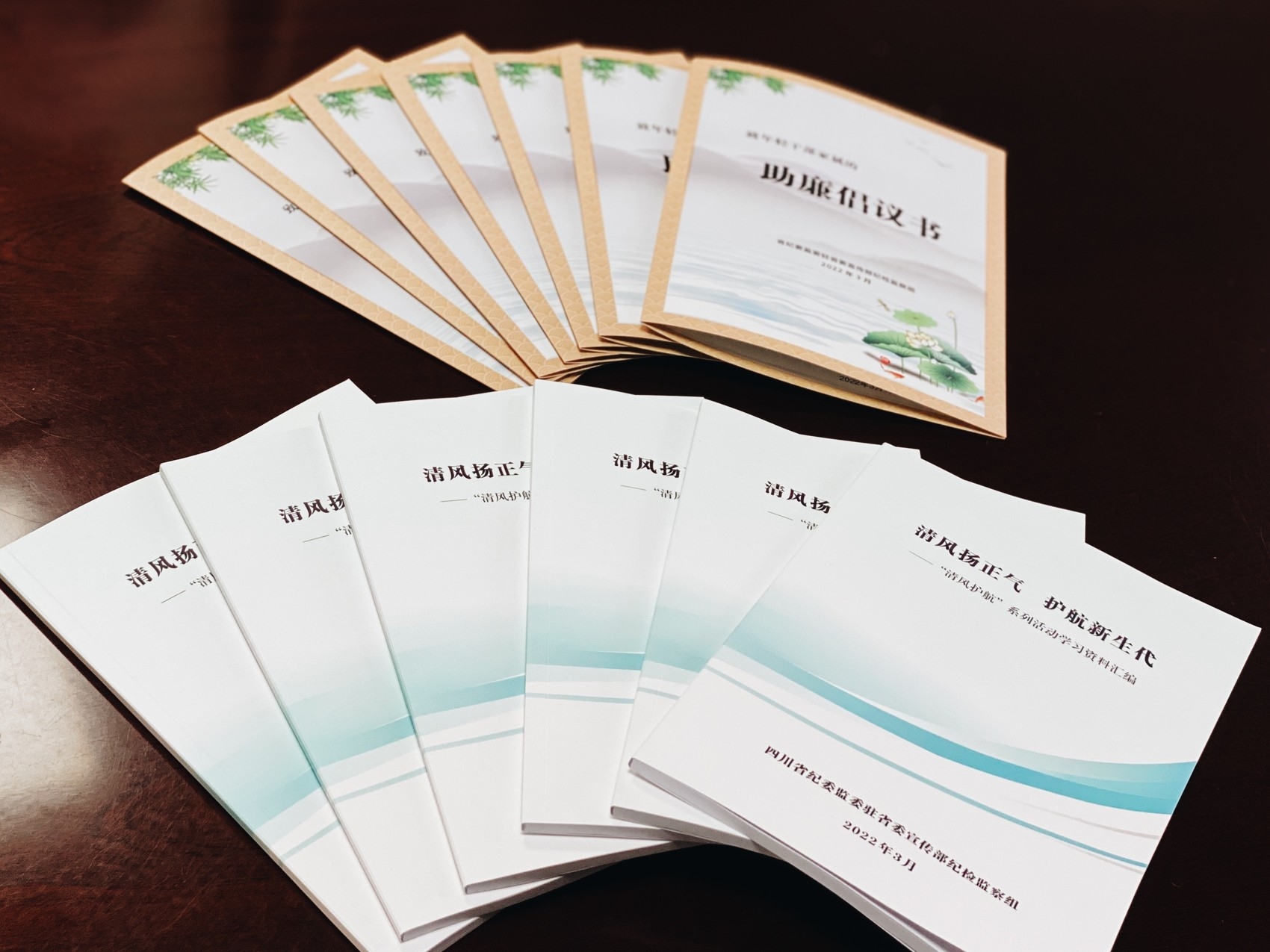 驻省委宣传部纪检监察组“清风护航”系列活动学习资料汇编和致年轻干部家属的助廉倡议书。 杨可心摄