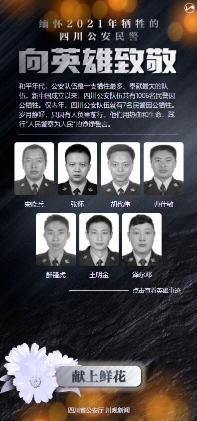 请让我们向四川公安去年牺牲的7位民警致敬。