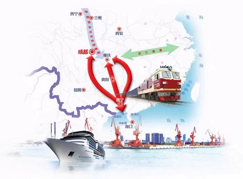 摊开地图可以看到,中国版图上,纵贯全国的3条物流大通道——中欧国际通道、沿江通道、西部陆海新通道形成“人”字形,在川渝地区交汇。把交汇点放大,西部陆海新通道的主通道中的1条,从成都出发。