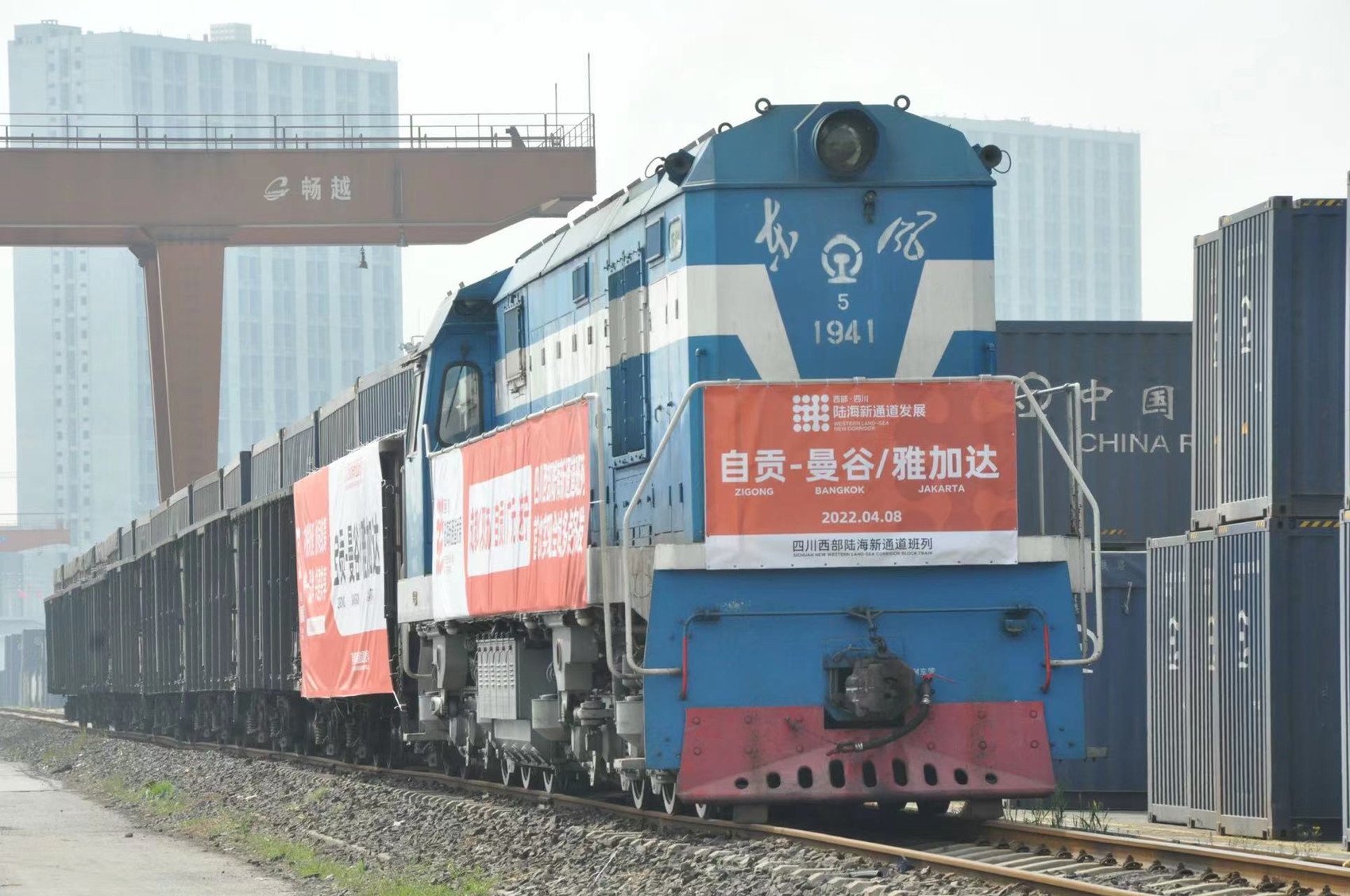 四川西部陆海新通道班列(自贡—曼谷/雅加达)开出。四川陆新公司供图