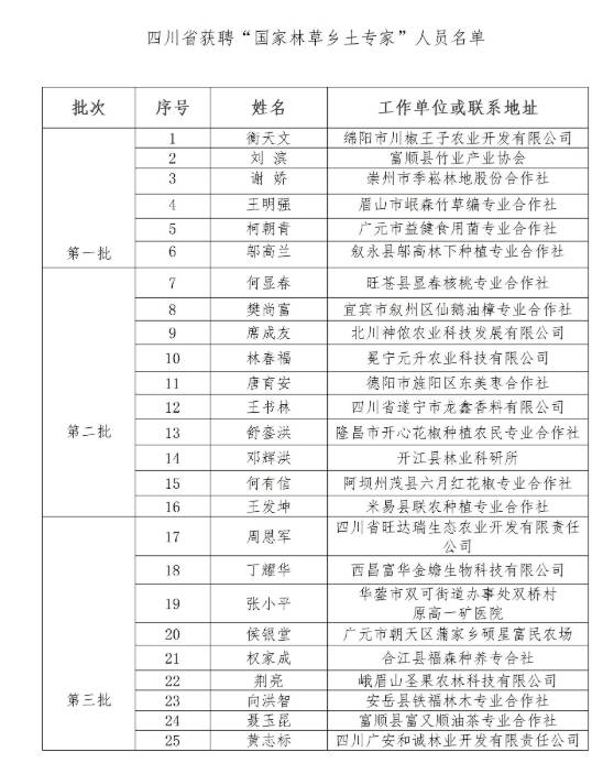 4月12日,记者从四川省林业和草原局获悉,近日,国家林业和草原局公布第三批“国家林草乡土专家”选聘结果,全国共有300名乡土人才入选,四川推荐的四川省旺达瑞生态农业开发有限责任公司的周恩军等9名林草乡土专家获聘。