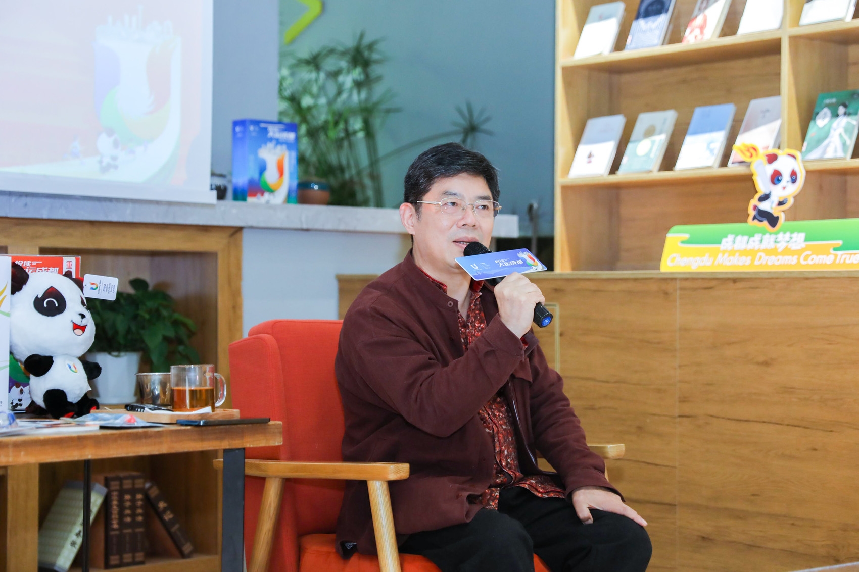 4月18日,“悦读大运成都”系列活动来到第三站——重庆,在瞰澜·樊登书店(龙湖络绎店)搭建“悦读幸福成都·大运文化专区”。“盖碗茶会客厅”迎来了四川作家马平,他为大家分享了《文学的成都:一个公园,一条街》,带领书友从成都的公园和街巷出发,洞悉天府文化的独特气质。
