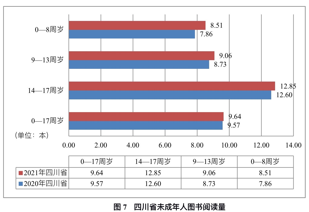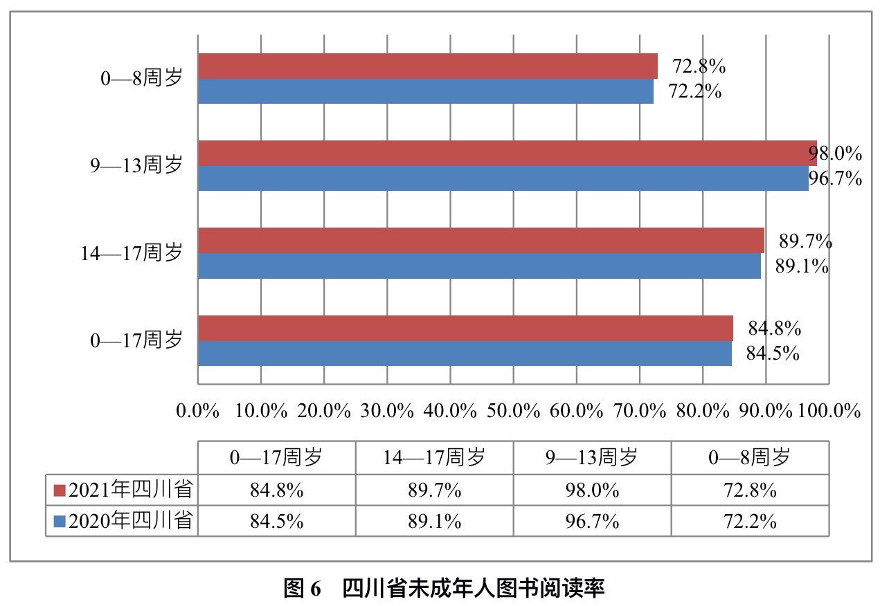 6年时间,四川省全民阅读从量到质变,生出了新气象。2022年4月20日,中国新闻出版研究院发布《2021年四川省全民阅读状况调查主要发现》,调查共九大主要发现,多方面呈现了四川省2021年的全民阅读状况,体现了四川省全民阅读能力的提高,为四川省全民阅读的工作开展提供了有力的数据支持。
