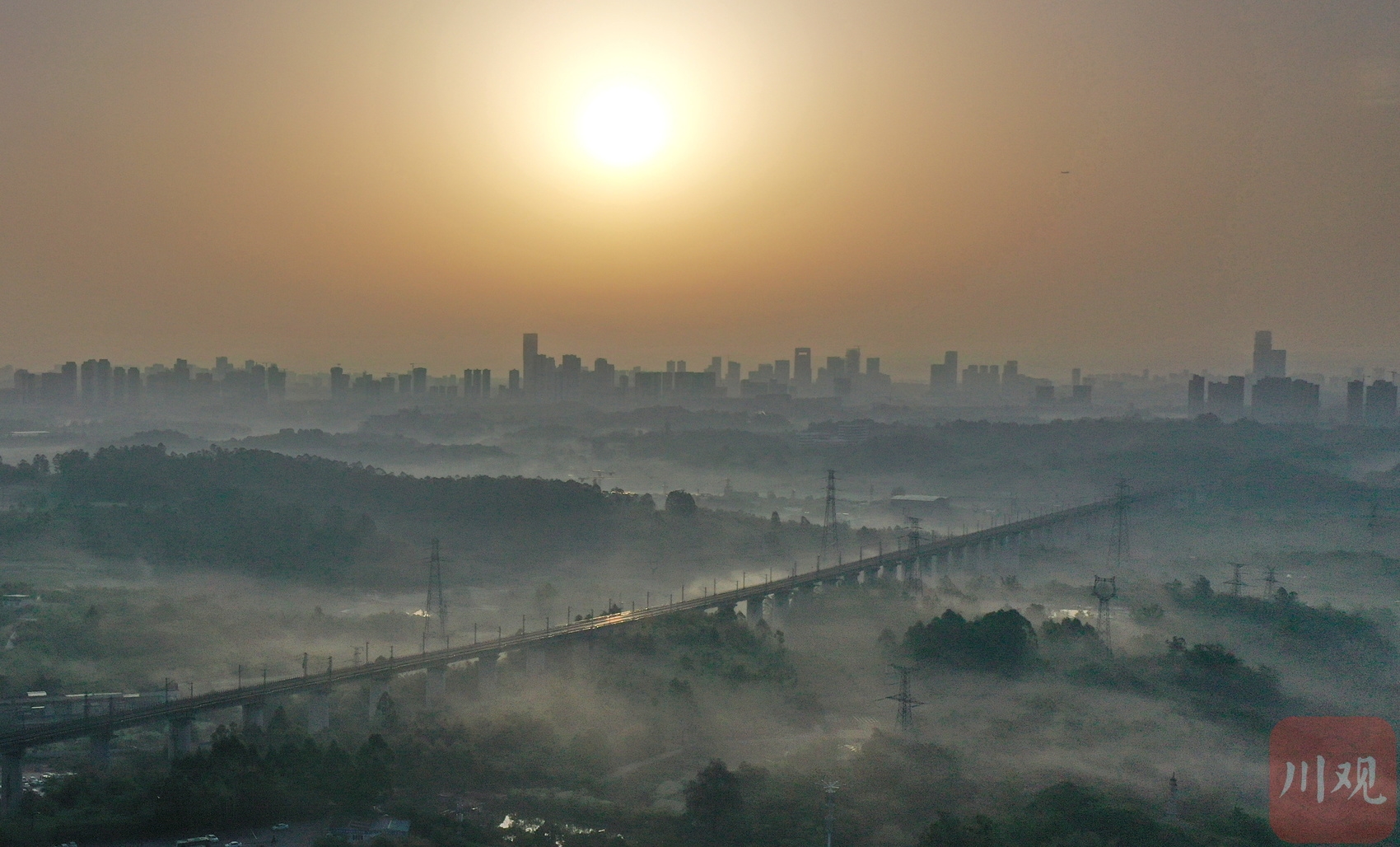 4月20日,成都市双流区永安镇境内薄雾缭绕,展现出一幅优美的生态画卷 。