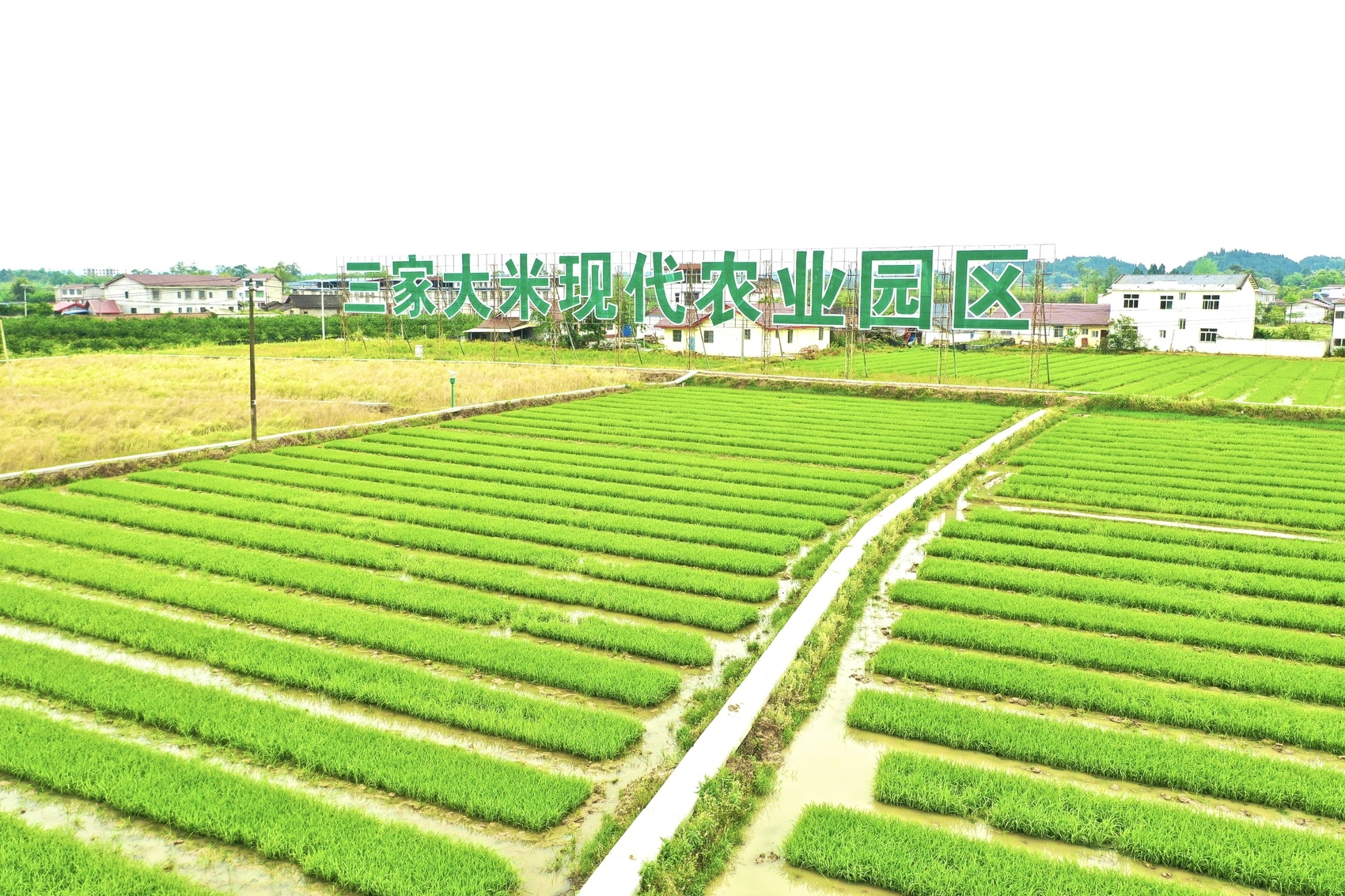 4月19日,记者来到位于遂宁市安居区三家镇三门村,这里是三家大米现代农业园区核心区。站在田埂上望去,水稻秧苗葱绿茂盛,微风拂过,波光粼粼。