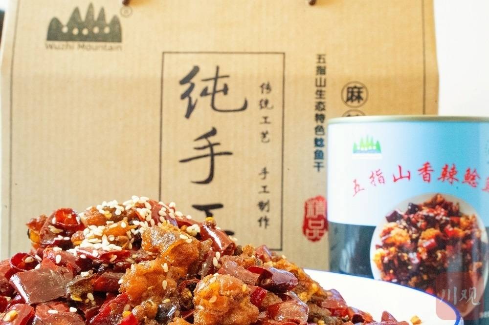 看准这一机遇,从2019年接手这家生态园以来,刘建刚的主要精力都放在产品创新上。他捧出一个纸盒,是新开发的香辣鲶鱼干产品。打开真空包装,倒出装盘,红色的辣椒段、白色的芝麻和鲶鱼干,色彩搭配引发食欲,鱼香、辣椒香、芝麻香,让人忍不住食指大动。