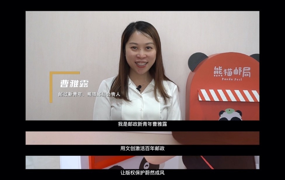 曹雅露 ,邮政新青年、熊猫邮局负责人。成都邮政以成都特有的熊猫文化为核心元素,探索创办了熊猫邮局。熊猫邮局通过一直不断地发掘四川文化资源,推出衍生原创文创产品,连接起城市文化、旅游文化、人与人之间情感表达的文化价值。