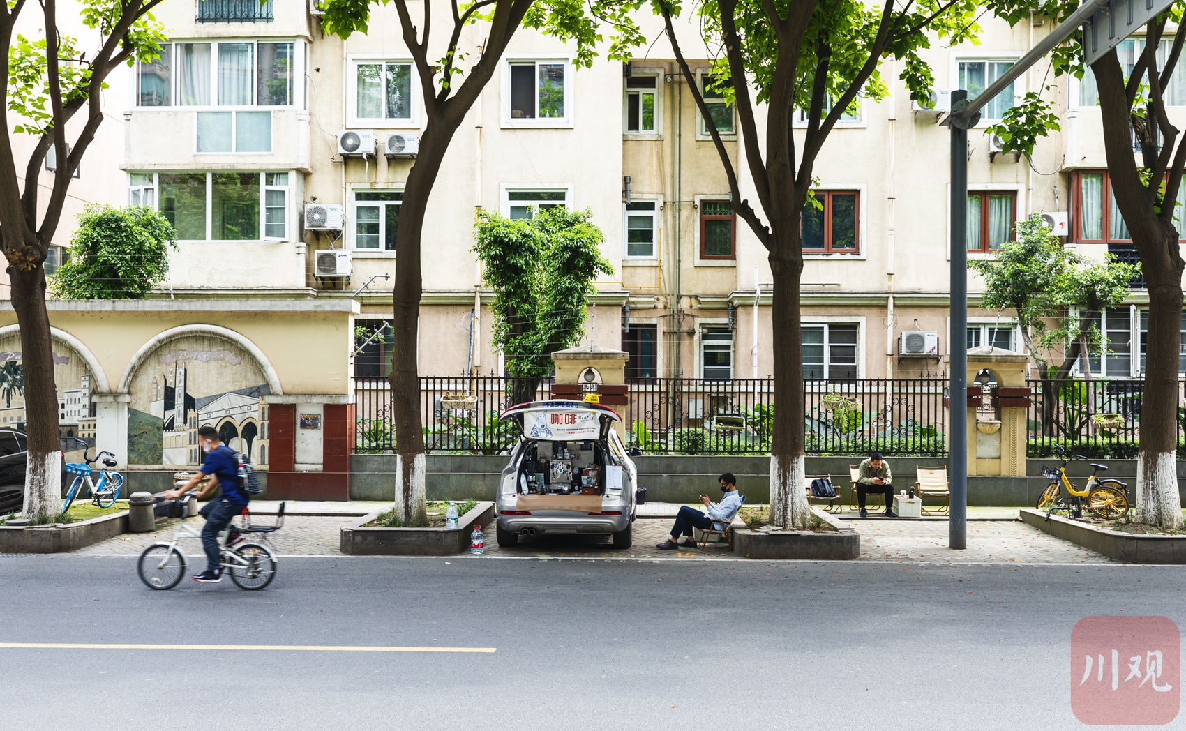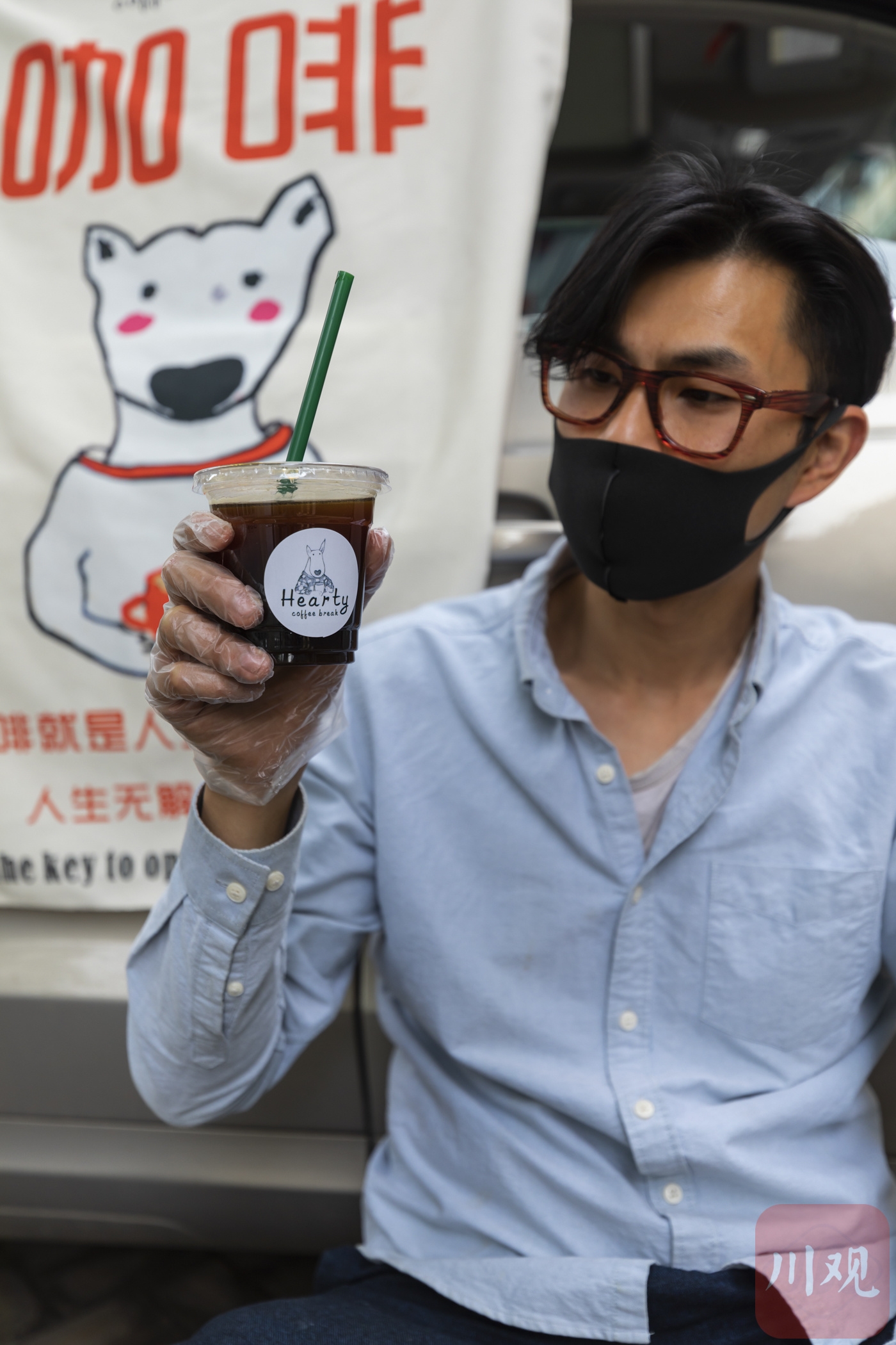 2022年4月19日,上午10点过,成都市桐梓林北路,阿浩将车停在路边停车场,他的“移动咖啡”Hearty开启一天的营业。阿浩将他的汽车咖啡店取名Hearty,意为:亲切的、友好的。