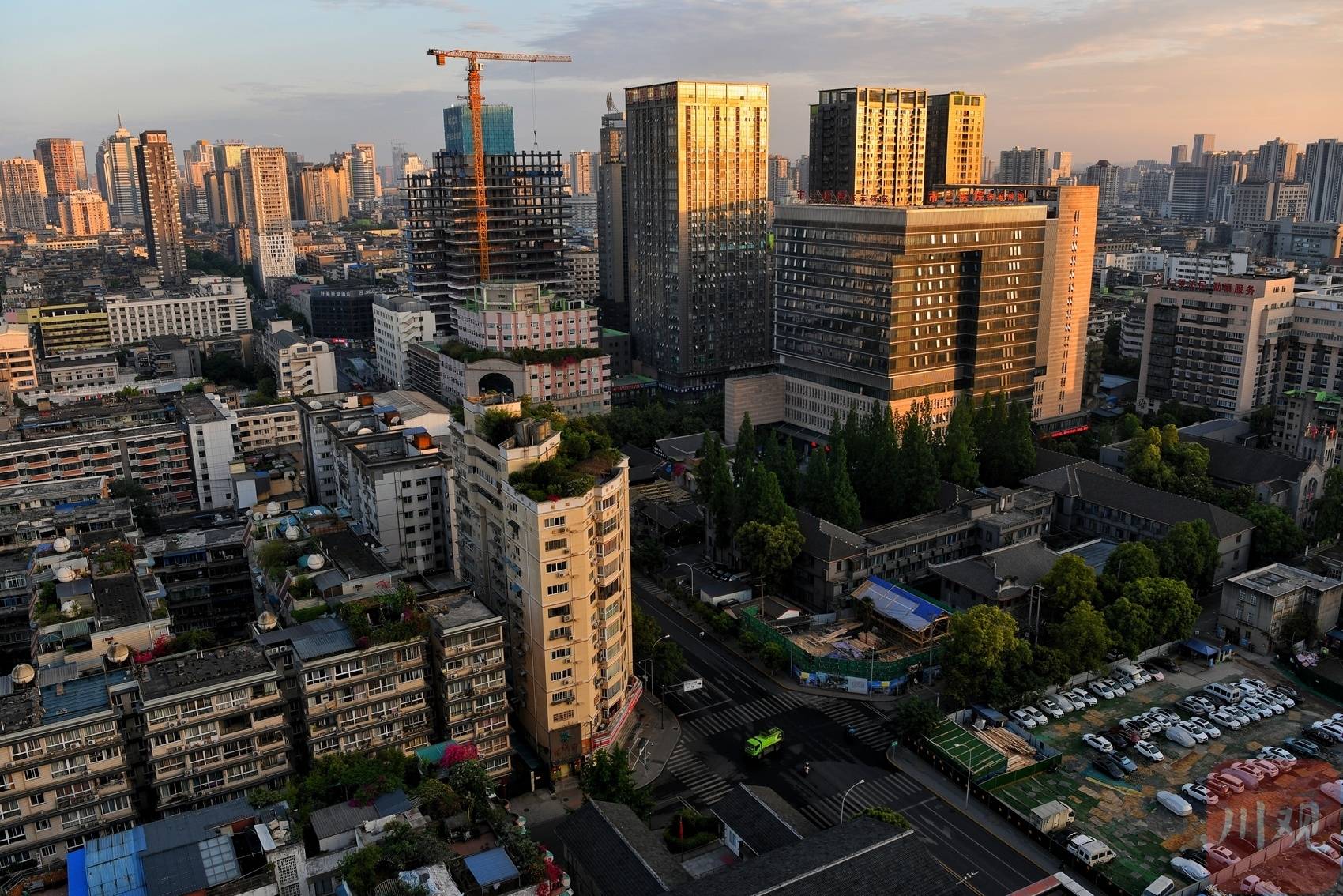 朝阳下的成都市区