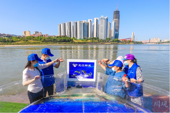增殖放流活动现场 图片由宜宾三江新区党群工作部提供