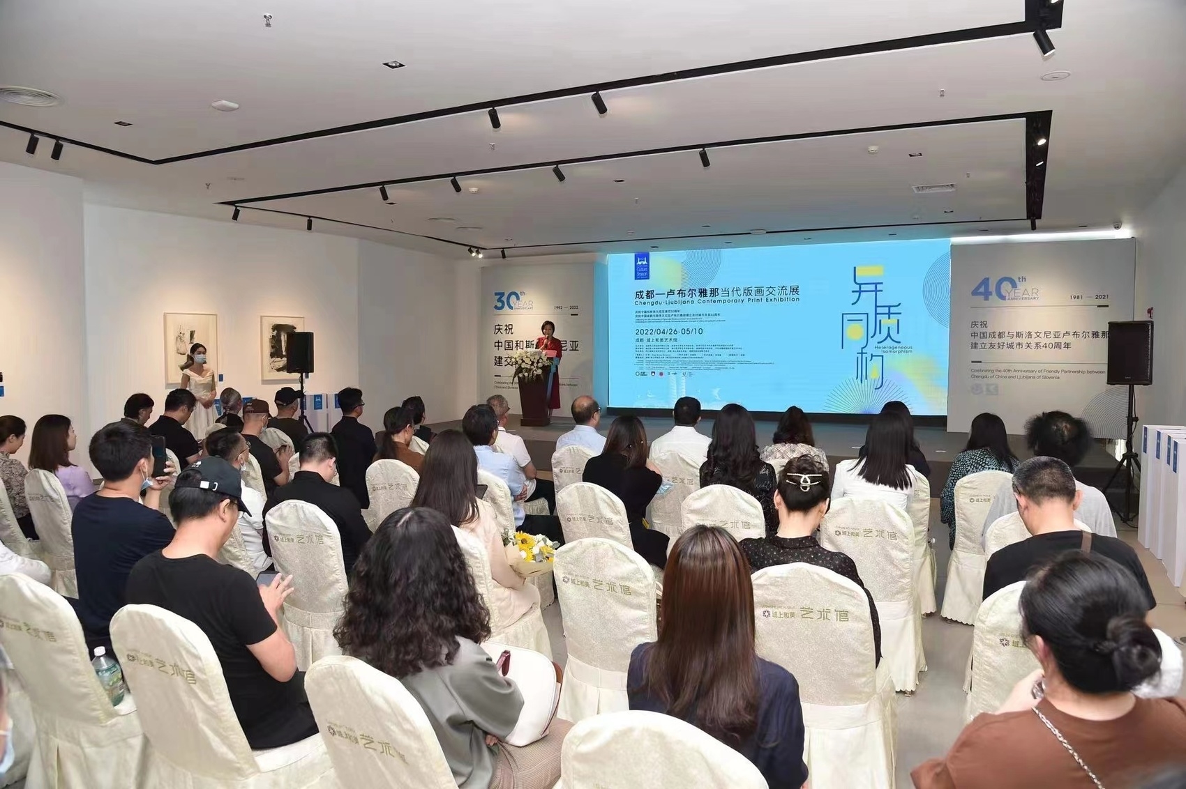 为庆祝中国与斯洛文尼亚建交30周年、成都与斯洛文尼亚首都卢布尔雅那建立友好关系40周年,“2022成都·欧洲文化季”首场活动“异质同构——成都—卢布尔雅那当代版画交流展”于4月26日在成都域上和美艺术馆拉开帷幕。该活动由成都市人民政府外事办公室、成都市文联、卢布尔雅那市政府国际关系部主办。两地艺术家以“异质同构”为主题,在画作中表达共同的文化价值和追求,展现两地人民深厚的传统友谊和独具魅力的文化。