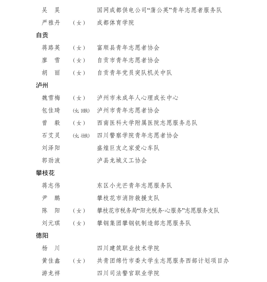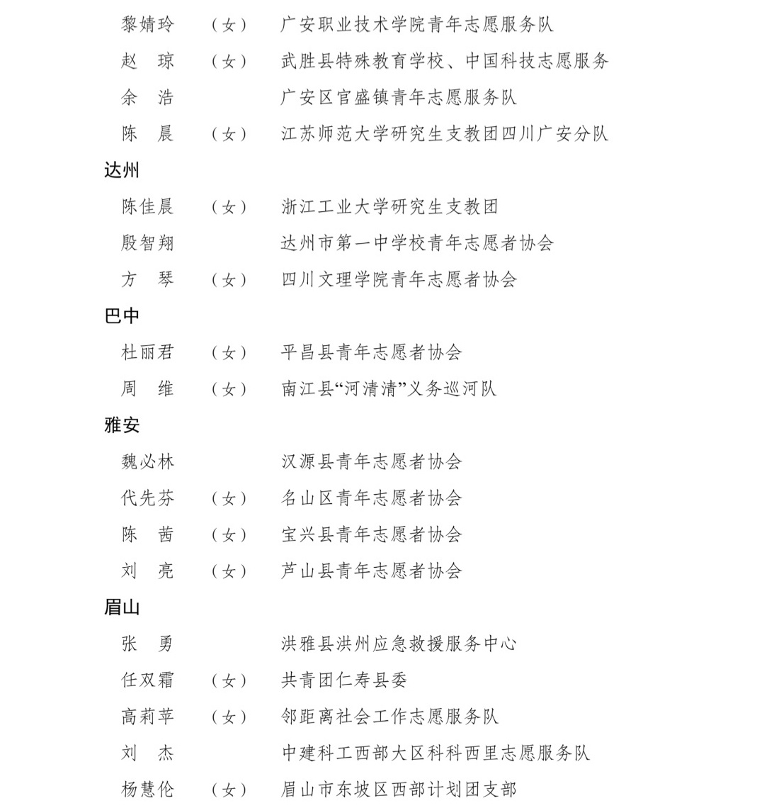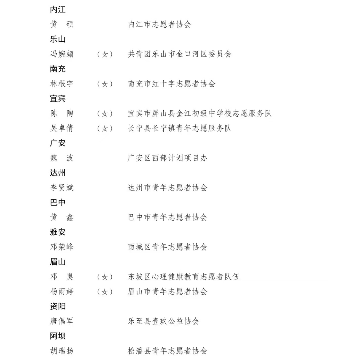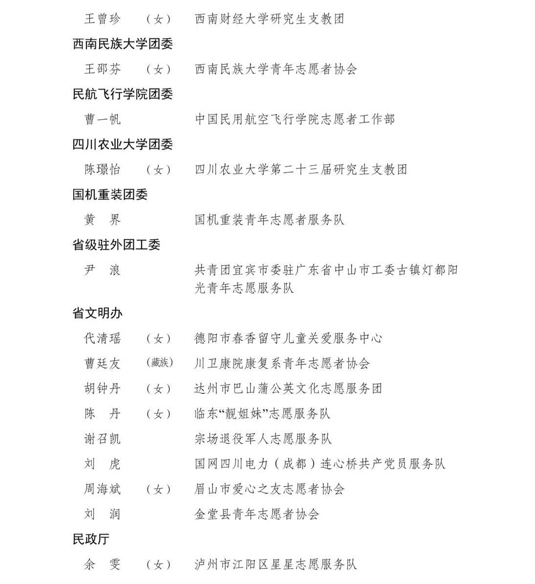 4月26日,记者从共青团四川省委获悉,为表扬先进、树立典型,共青团四川省委、四川省精神文明办公室、四川省民政厅联合开展了第九届四川省青年志愿服务优秀个人、工作者、组织和项目评选活动,沈西雯等150名个人获评第九届“四川省青年志愿服务优秀个人”,郭骏榕等50名个人获评第九届“四川省青年志愿服务优秀工作者”,崇州青年应急救援服务中心等50个组织获评第九届“四川省青年志愿服务优秀组织”,“青马燎原——新时代乡村振兴传红群英会”等75个项目获评第九届“四川省青年志愿服务优秀项目”。